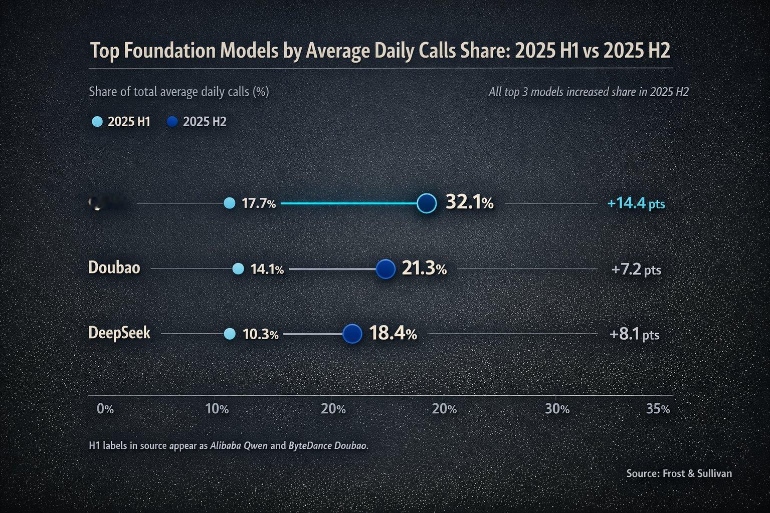 其中,也是我一再说的,阿里巴巴是领先者。在真正创造利润的企业应用领域,Qwen 占比最高。