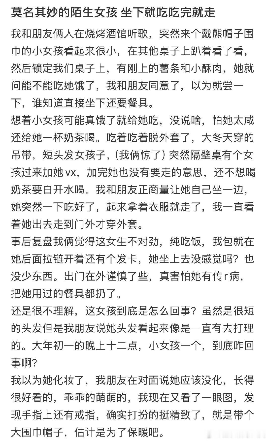 遇见一位不期而遇的陌生女孩,她坐下便开始用餐,吃完后迅速离开。