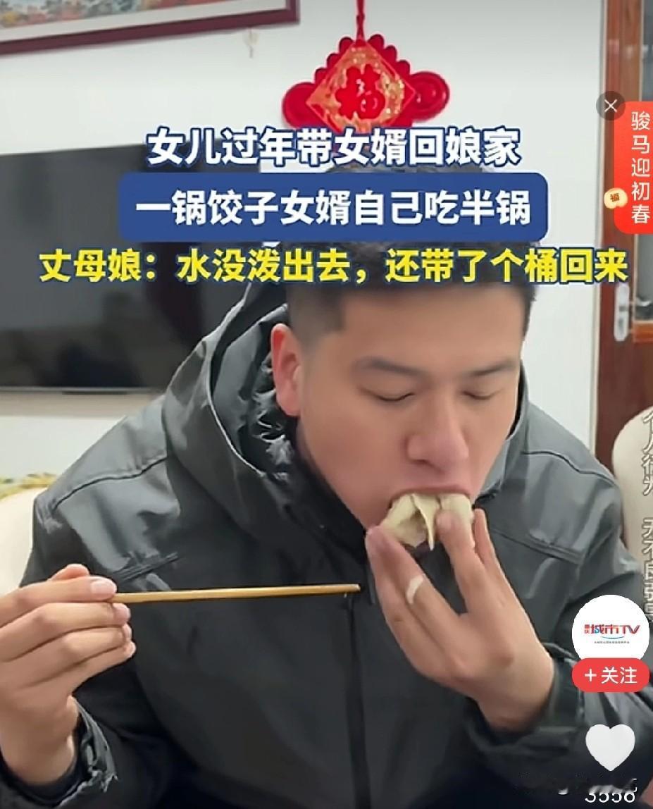 这就是妥妥的没家教! 倒不是说去丈母娘家,自己吃了半锅饺子有点多,吃多吃少那是自己的饭量大小,吃40个说实话也不算太多,但是这个吃相真不敢恭维呀! 从南到北,就没有见过把饺子串在筷子上,然后直接把四五个饺子一起塞在嘴里,那底是什么样的环境能塑造这样的吃饭方式!