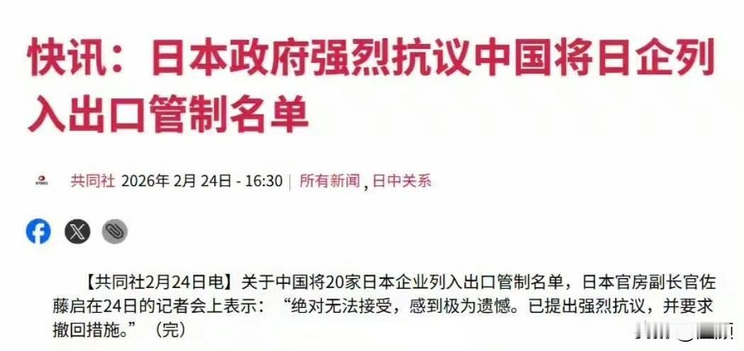 强烈抗议、极为遗憾、绝对无法接受,要求立即撤销…2月24日,中国商务部依法将三菱造船、川崎重工、NEC等20家参与日本扩军的实体列入出口管制清单,全面禁止向其出口稀土、特种合金等关键两用物项,境外转供亦被严格封堵。 此举直指日本军工供应链命门,日本高端军工制造高度依赖中国稀土,禁令直接影响其舰船、战机、导弹、航天等核心领域。 日本政府当天通过共同社发声,对中方措施表示强烈抗议、极为遗憾、绝对无法接受,要求立即撤销。 中方明确表示,相关举措合法合规、正当必要,旨在维护国家安全、遏制日本再军事化,不针对民用领域,并非一刀切。
