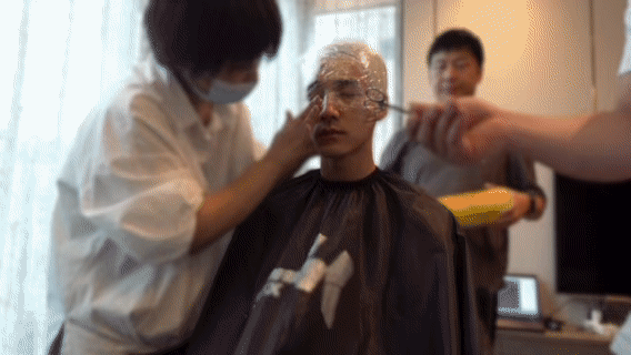 此沙光头造型 此沙把头发全藏起来测量头围,谁曾想大家就这样水灵灵的被“光头”的他帅到了,好立体的五官完全是雕塑来的!!