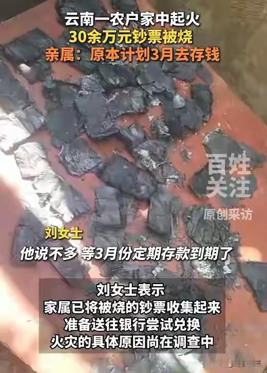 30万元不存银行放在家里,烧了,太可惜了,不明白为什么那么多现金还放家里。
