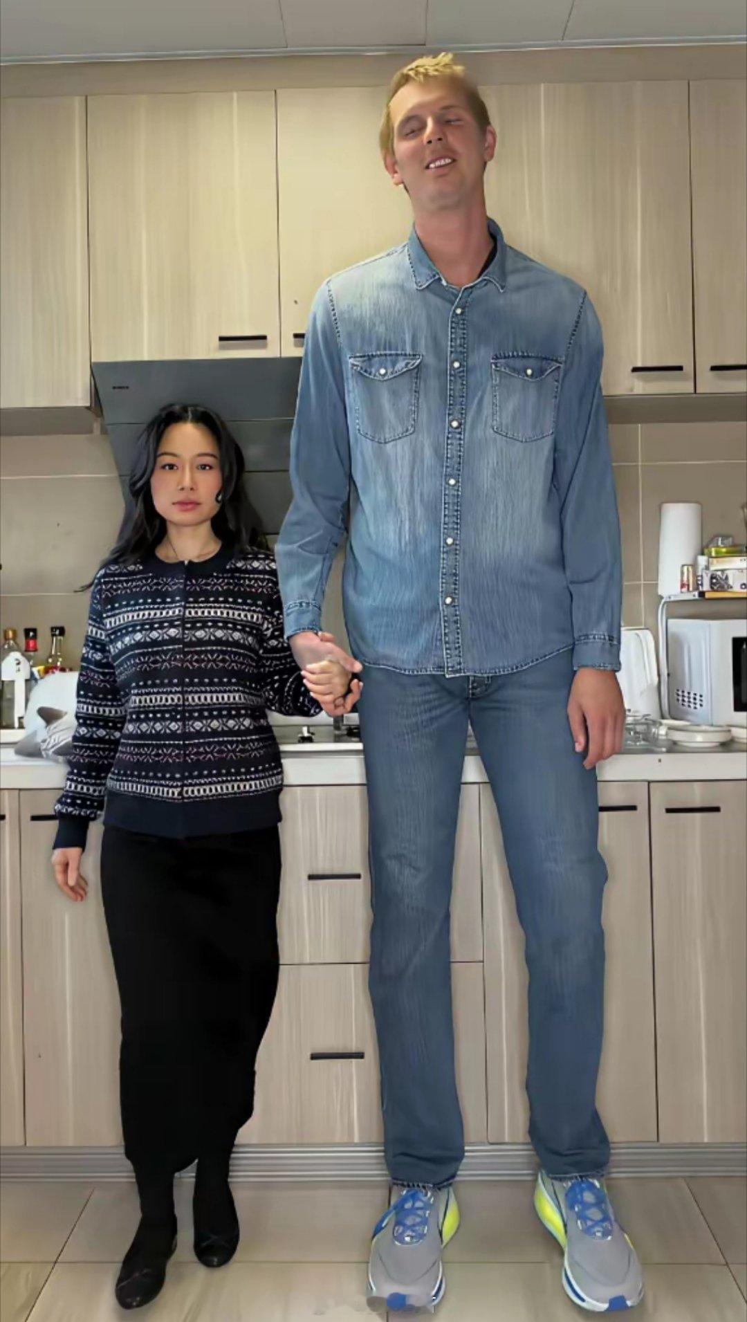 身高差40cm的跨国夫妻!152cm中国姑娘×190cm外国老公,最萌身高差cp甜度爆表。你身边也有这样的组合吗?