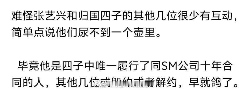 终于明白张艺兴和归国四子的其他几位为什么很少有互动了…