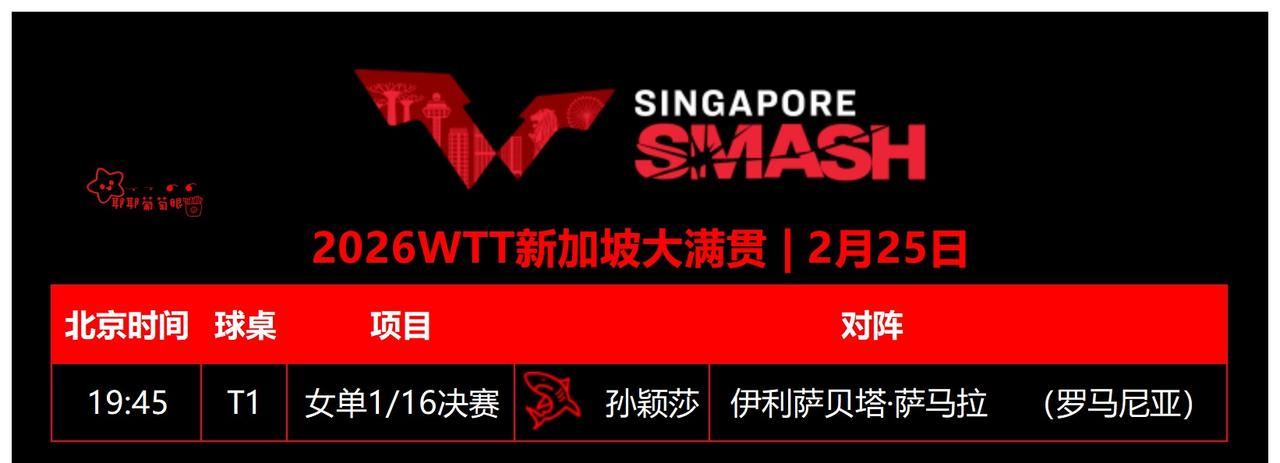 2月25日赛程|女单1/8决赛 ⏰ 19:45 T1 孙颖莎🇨🇳VS伊丽莎贝