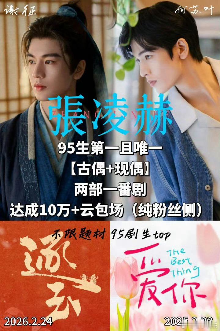张凌赫粉丝逐玉云包场破10w座了,是95生第一且唯一古偶现偶达成10w云包场的,