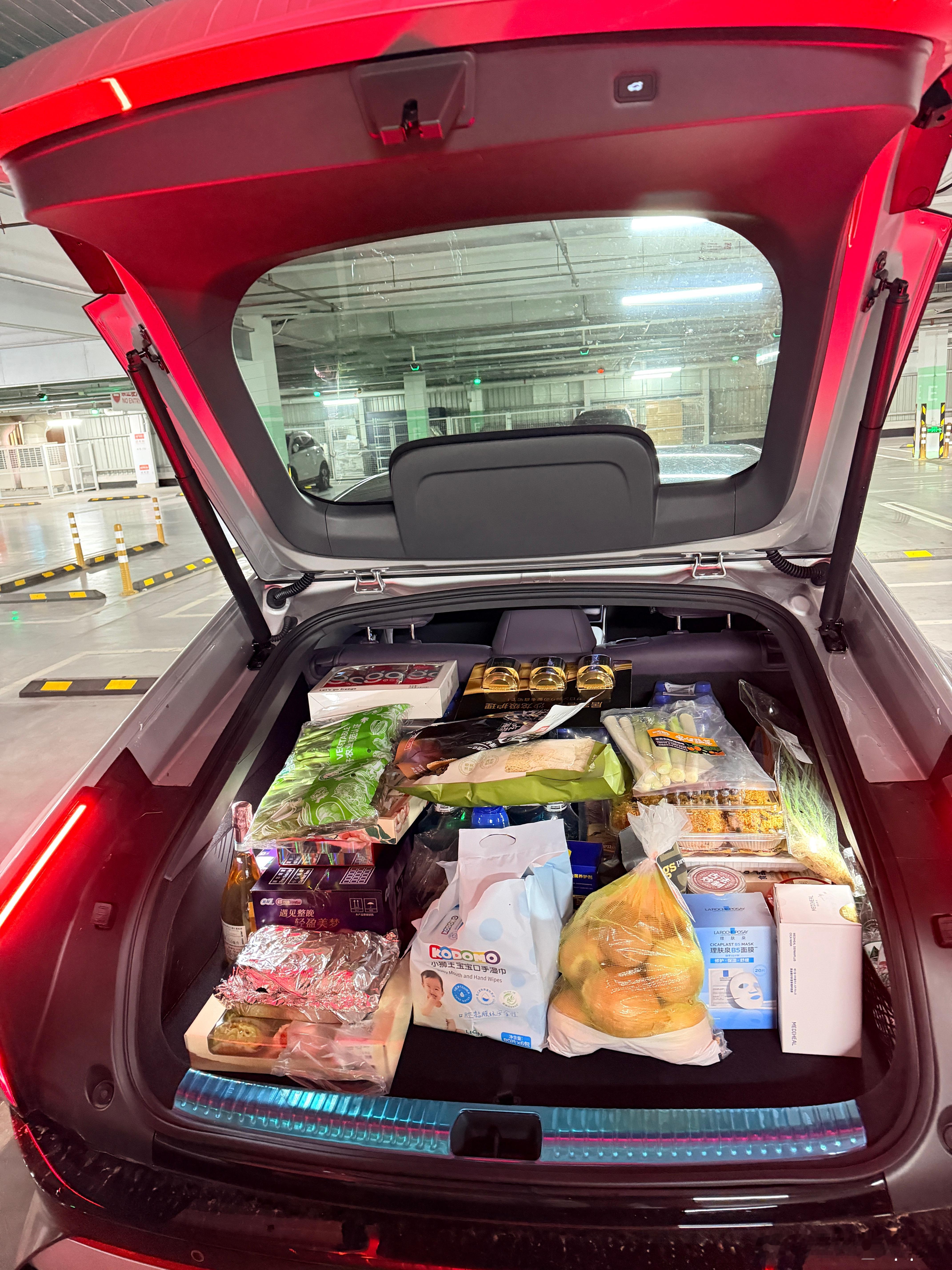 P7这后背箱也太能装了 两大购物车的东西轻轻松松塞下 并且还有空余菡你来看车菡菡子的日常开着小鹏回家过年