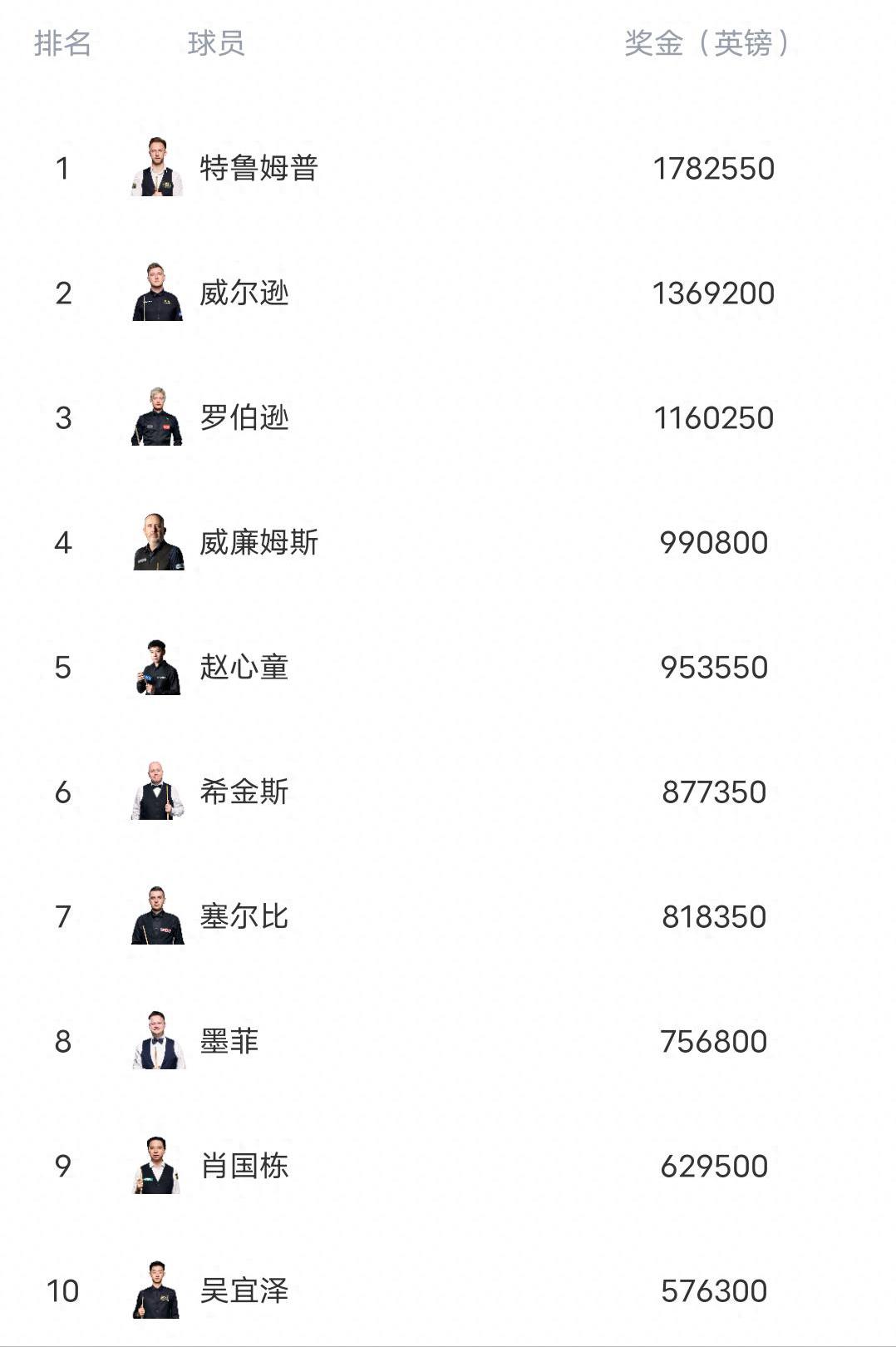 赵心童排名升至世界第5!出战威尔士公开赛 世界排名更新的那一刻,赵心童的名字停在第五位。北京时间2月24日,斯诺克球员锦标赛落下帷幕,赵心童在决赛中以10-7战胜约翰·希金斯,拿到15万英镑奖金,排名从第七升至第五。 这不是一场顺风顺水的胜利。比赛前段,赵心童始终被希金斯压制,比分被拉开,节奏被控制,场面并不占优。比分来到6-7时,局势开始改变。 赵心童连续打出高质量进攻,长台命中率提升,围球处理干净,没有给希金斯留下反击空间。 几局之间,节奏完全被赵心童掌握。10-7定格,冠军到手。这场胜利意义很直接。 赵心童成为首位背靠背拿下大奖赛和球员锦标赛冠军的球员,排名反超肖恩·墨菲与希金斯,逼近第四位的马克·威廉姆斯。连续高强度作战带来的不只是积分,还有压力。 威尔士公开赛紧接着开打,赵心童没有选择休整,而是直接报名参赛。首轮对手是范争一。这是一场中国球员之间的对决。 范争一曾在欧洲大师赛击败罗尼·奥沙利文夺冠,一度成为焦点人物,之后状态起伏,没有再拿到排名赛冠军。两人交手,看点清晰。赵心童的状态火热,但连续参赛消耗不小。 范争一需要证明自己,比赛动力同样强烈。赵心童为什么能在球员锦标赛逆转希金斯。关键在稳定。长台命中之后的衔接顺畅,安全球处理稳健,心理层面没有出现波动。 希金斯经验丰富,却在关键阶段失去主动权。节奏被抢走,机会越来越少。排名上升到第五只是阶段结果。距离世界第一仍有差距,积分积累还需要时间。威尔士公开赛能否延续手感,是外界关注的焦点。 连续作战考验体能,也考验专注度。赵心童站在一个更高的位置,比赛不再只是赢一场那么简单。世界第五意味着压力,也意味着机会。德比之战即将上演,答案很快揭晓。