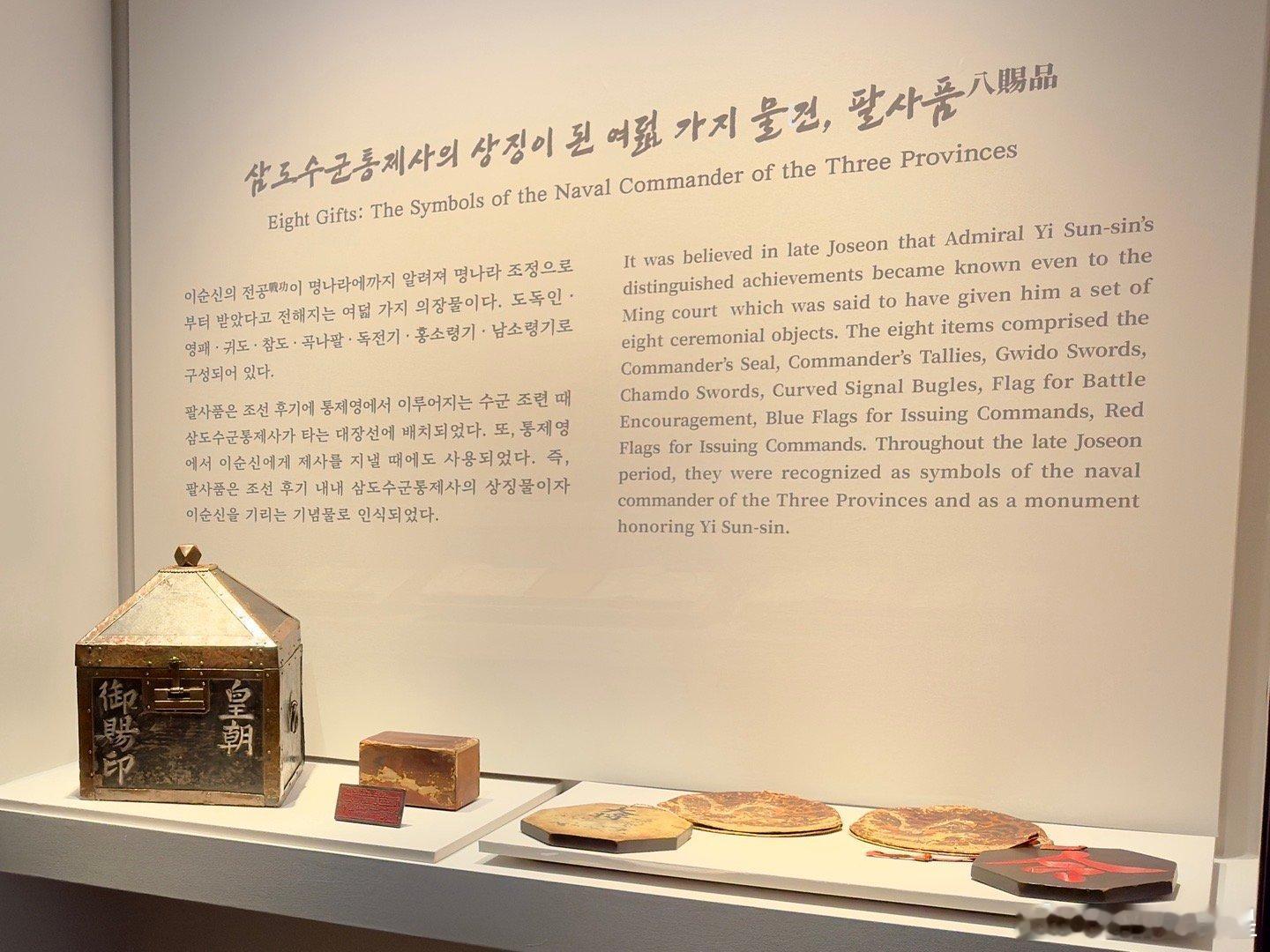 图8是皇朝八赐品,据说是万历皇帝赏赐的,真实性有争议,有人说可能是明军统帅赏赐的,但是被崇敬供奉了几百年,是李舜臣的重要纪念性物品。