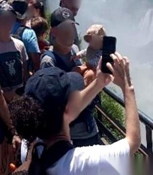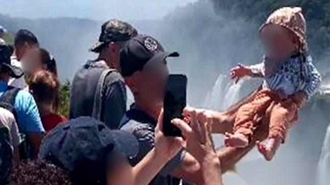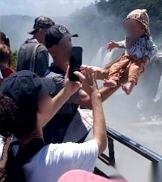 阿根廷伊瓜苏瀑布,那地方被称为“魔鬼咽喉”。 水声震得人耳朵嗡嗡响,一个男人,单手抱着个婴儿,直接举过了安全护栏。 整个观景台的人,本来镜头都对着瀑布,一下全转过来了。手机镜头里,那个穿着小衣服的婴儿,整个悬在近80米的高空,底下就是翻滚咆哮的激流。 他不是失手了,也不是在救人。 他只是把孩子递出去,让同伴找个好角度,咔嚓,拍张照片。 脚下的金属栈道被水雾打得湿滑,旁边的游客下意识地往后退了一步,手紧紧抓住栏杆,好像自己随时会掉下去一样。而那个孩子,就在那只成年人的手里,像个小道具,背景是全世界最壮观的瀑布之一。 照片一出来,炸了。 阿根廷国家公园管理局直接发了通告,人脸识别已经启动,全网找人。 一旦这个男人的身份被确认,后果只有一个:终身拉黑。阿根廷所有的国家公园,他这辈子都别想再踏进去一步。 就为了一张朋友圈里可能会收获几个点赞的照片。 说真的,一张照片换一个终身禁令,这可能是有史以来最贵的一张游客照了。