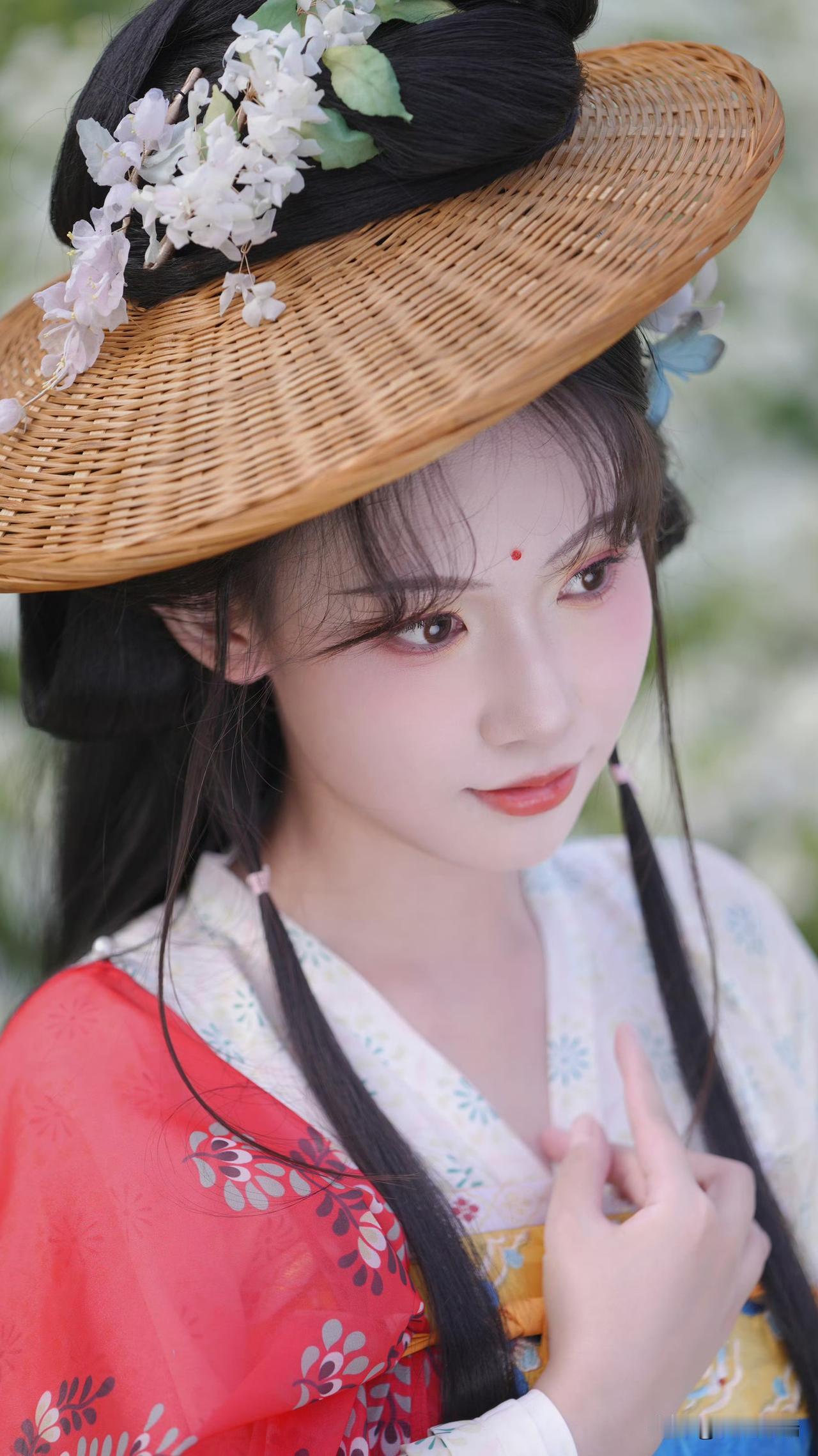樱花树下,甜美少女,猫耳发饰,黑裙红唇,春日气息。