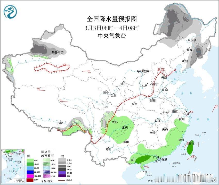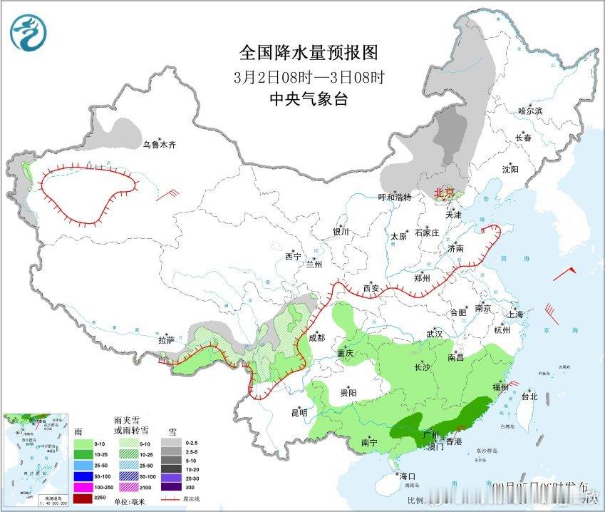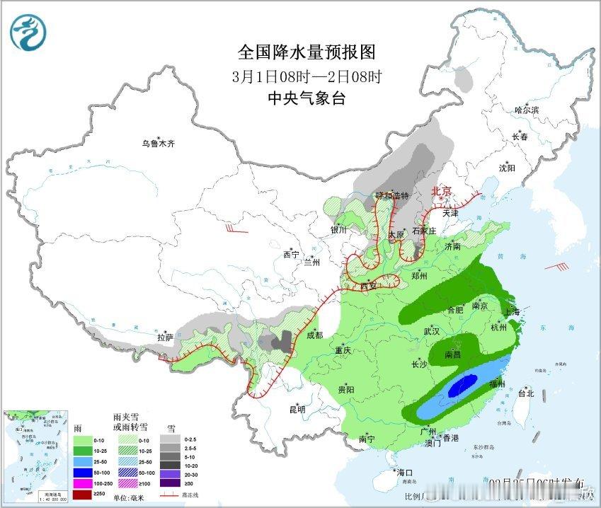 北方的降雪最强的区域,在新疆天山沿线,内蒙古东部和黑龙江西部,不乏大雪-暴雪。而北方降雪还有不少不确定的区域。比如26日的北京,28日降水区北段的甘肃南部、陕西中南部、山西中南部、河北南部、河南北部、山东北部,低空温度处于雨雪临界。3月1日内蒙古中部的降雪看水汽北上程度,这个也有变数。