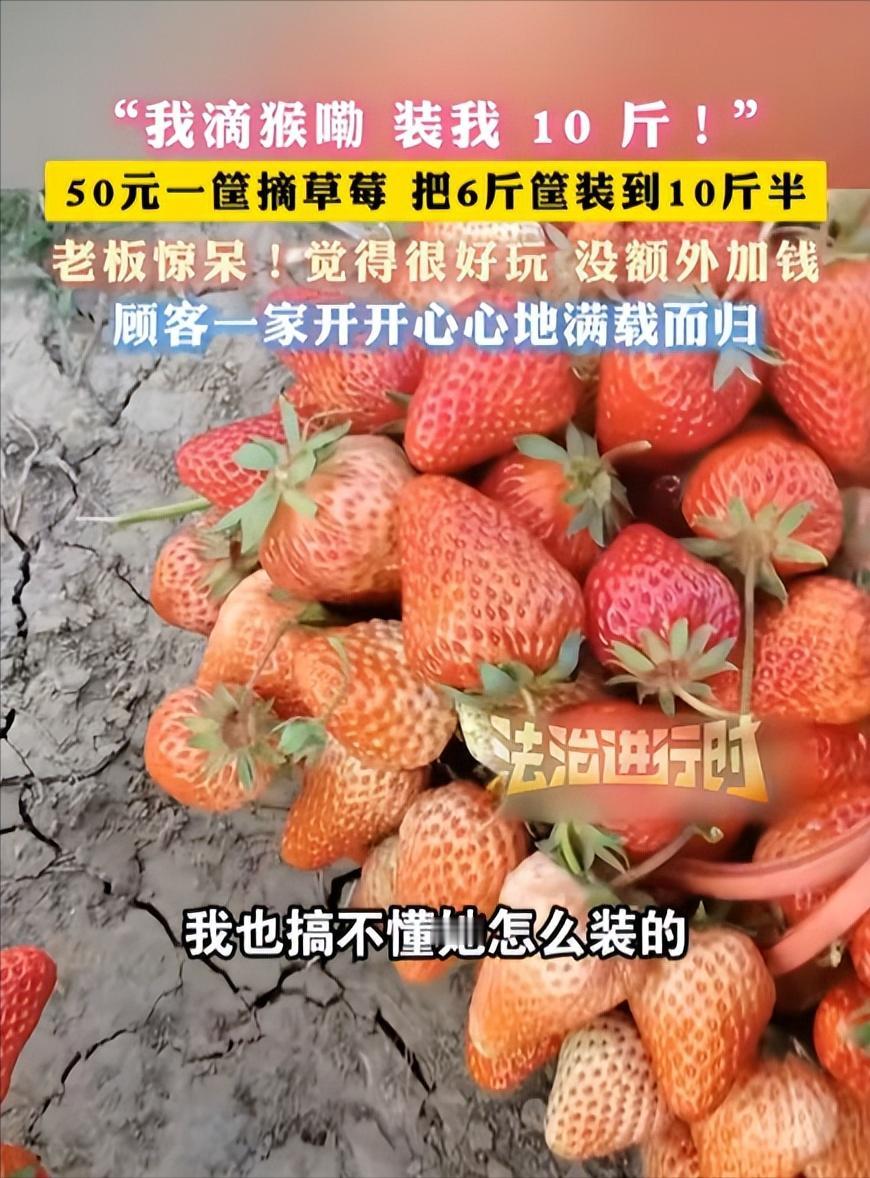 安徽临泉,一女子带着孩子们去摘草莓,老板说50元一篮子,万万没想到,女子竟在篮子中装了10斤草莓。在女子去结账时,老板都被惊呆了,这个篮子原本最多装6斤。 安徽临泉的冬日暖阳下,一家草莓园收银台前的空气忽然凝固了。老板目光紧紧落在电子秤那不断跳动的红色数字上,许久都没说出一个字,最终定格的数字让他沉默良久——**10.5斤**。 在他手边,那个蓝色的塑料采摘篮正无助地承托着一座几乎垂直拔起的“草莓塔”。这种篮子出厂时的额定载重极限,满打满算也就6斤。 时间拨回今年春节假期。为了把三个孩子从手机和平板的蓝光里拽出来,一对夫妻决定带全家去大棚体验农趣。进门前,老板笑着递来一只空篮子,语气爽快:“五十块,你尽管装,装多少都算你的。”” 这句话本是招揽生意的客套,却被这家人当成了极限挑战的冲锋号。 一开始的画面还很温馨,孩子们在大棚里兴致勃勃地采摘,小手忙个不停,没一会儿就把小篮子装得满满当当,脸上满是收获的欢喜与满足。但女主人敏锐地捕捉到了规则的边界:只要篮子不散架,高度似乎并不是问题。 她瞥见邻近游客在倒出草莓重新码放,灵感瞬间在脑海中炸裂。原本悠然惬意的田园采摘,不知不觉间,竟变成了一场对空间布局、动线规划与效率分配都格外讲究的细致实践,少了几分随性,多了许多条理与章法。 一家五口迅速完成了分工。孩子们负责前端筛选,专挑个头均匀的大果。夫妻俩坐镇后方,充当结构工程师。 他们研发出了颠覆性的架构方案:利用草莓自带的柔韧根茎作为“锚栓”,通过交叉咬合产生摩擦力,将一颗颗浆果像垒砖头一样硬生生嵌在一起。 没有任何外部支架,这座红色的塔就这么在窄小的篮沿上方凌空而起。当他们提着这沉甸甸的“战利品”走向秤台时,单价已被这套组合拳生生拉到了不足5元一斤,直接踩碎了商家的利润红线。 老板脸上的震惊是藏不住的。干了这么多年采摘生意,他大概也是头一回见到把物理学原理用到地头的游客。 但他最终没有翻脸,甚至没提加钱的事。这并非老板生性豪横,而是他深知这50块钱背后的契约利害。 从他喊出那句“能装多少是多少”起,一份口头合同就已生效。顾客没偷没抢,只是把规则执行到了连制定者都发怵的极致边界。 根据《消费者权益保护法》第四条,诚实信用是交易的底座。老板如果这时候反悔,面临的可就不止是几斤草莓的损失,而是可能被扣上虚假宣传的帽子,甚至触发“退一赔三”的行政重锤。 他显然算清了这笔账,于是选择大方地笑脸相送。但这家人满载而归的背影,却在互联网上撕开了一道关于“体面”的辩论伤口。 有人将其奉为“会过日子”的典范,认为在规则缝隙中掘金是小市民的生存智慧。也有人嗅到了“公地悲剧”的预警,担忧这种薅羊毛到极致的行为,最终会倒逼规则全面收紧。 在这场博弈中,没有绝对的赢家。老板虽然亏了本,却保住了口碑。女子一家赢了重量,却在舆论场里丢了些风度。 可以预见的是,等到来年春风吹红草莓时,这家果园门口,多半会立上一块新的提示牌:每篮草莓限重六斤,超出部分另行计价。 当所有的“随心所欲”都被迫套上精准的刻度尺,那些曾经带有温度的江湖承诺,终究会在这种极致的利益挤压中消失殆尽。 参考信息:中华网.(2026-02-24).50一筐随便装女子装走10斤草莓:没有加钱,顾客走的时候很开心
