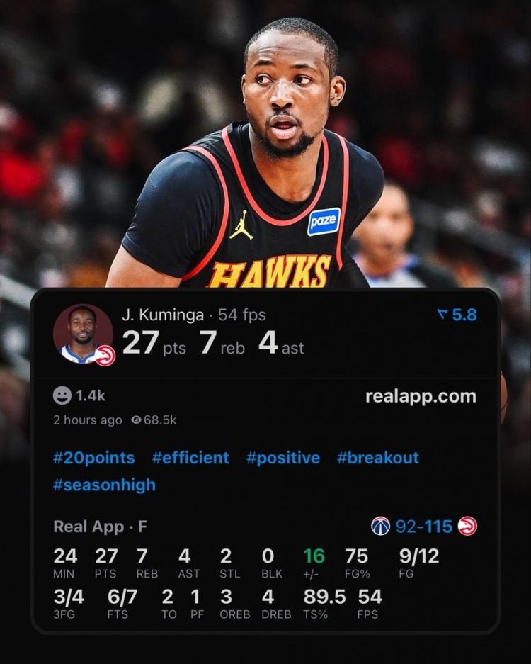 科尔真的是耽误了库明加几年,如今去了老鹰,库明加首秀就创了一项队史新纪录! 库明加被交易后一直养伤,直到今天对阵奇才才迎来首秀,而替补出战的他表现出色,打了24分钟,12投9中,三分4中3,贡献了27分7篮板4助攻,这效率,这全面性,在勇士的时候,他根本就没这种自由发挥的机会! 而首秀替补贡献27分,也创下老鹰替补球员首秀得分纪录! 不得不说,库明加硬刚勇士管理层和教练组,是有实力和底气的,他清楚自己的实力,但勇士的打法体系,不仅没法发挥他最大潜能之外,科尔还要对他刻意打压,最后闹得不欢而散! 如今换个地方,库明加有望用实力,狠狠打脸科尔!