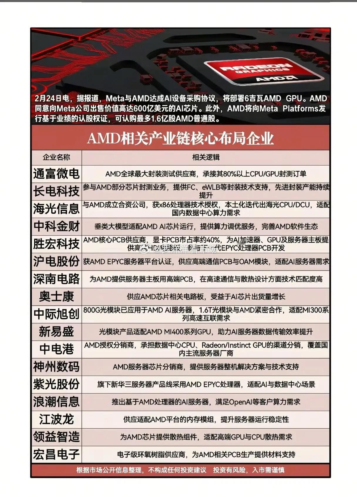 分销和整机环节同样藏龙卧虎。中电港是AMD授权分销商,神州数码提供服务器整机方案,浪潮信息推出基于AMD处理器的AI服务器。当Meta的订单转化为实际出货,这些公司的营收表将直接受益。