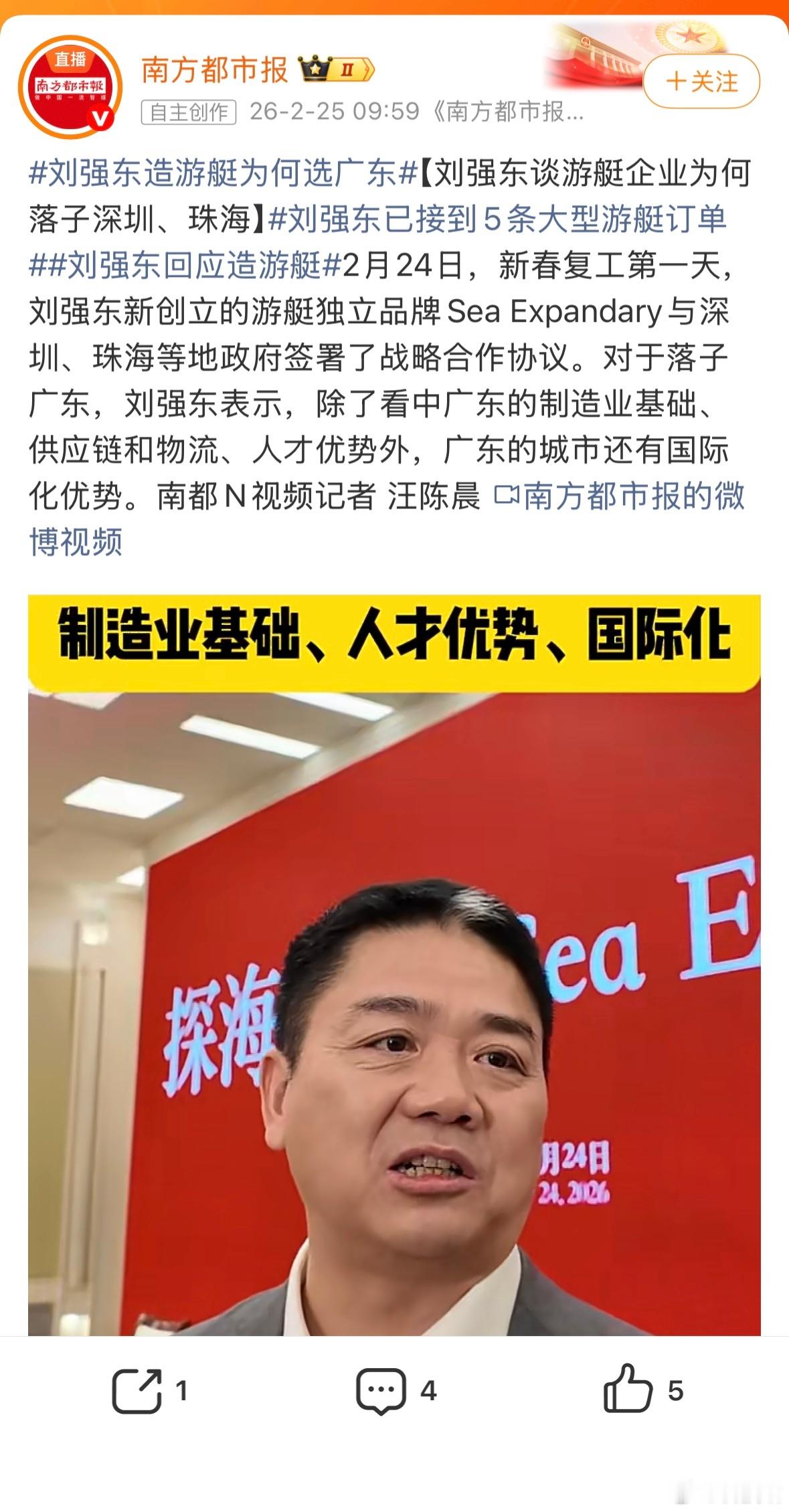 刘强东已接到5条大型游艇订单个人投资的游艇品牌,主打新能源智能化,初期面向欧美市场,未来还会推出10万级别的游艇,让工薪阶层也能买得起。