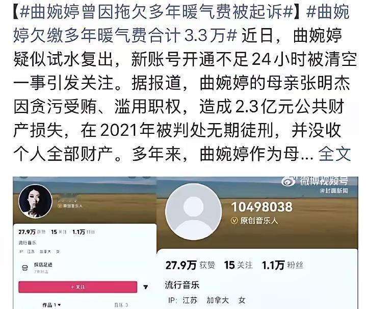 曲婉婷这个春节过的可是天上地下呀。 还不容易开通了账号,想着能赚国内的钱,结果24小时就被封号处理。 不过她好像还很委屈,说自己被株连九族。 也不知道她怎么会这么有脸面说这些话,当初她老妈搞掉的那几百个普通家庭的救命钱的时候怎么就不想想自己在加拿大的生活是哪里来的呢? 现在她估计在加拿大也混不下去了,连供暖费都拖欠,应该也快跌倒斩杀线下,不知道她还在狱中的老妈看见这个结局会不会忏悔呢?