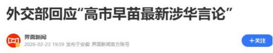 让步了?高市早苗最新讲话3天后,中方回应,再给她一次机会? 2 月 18 日,高市早苗在日本国会的投票中再次当选首相,当天她发表施政演说时,话里话外透着想和中国缓和关系的意思。 她称中国是 “重要邻国”,要推进中日战略互惠关系,还说会继续和中国沟通,冷静处理问题。单听这些话,确实让人觉得她的姿态放低了,像是想改善中日关系。 但大家千万别忽略一个关键问题:高市早苗说这些漂亮话的时候,压根没提她之前引发中日外交风波的涉台言论,更别说撤回了。 这话不是随口说说的,去年 11 月,她在日本国会公然宣称 “台湾有事” 可能构成日本的 “存亡危机事态”,暗示要武力介入台海问题;今年 1 月,她又在电视节目里说美日可能联合撤离台海地区的公民,还把美国拉进来,变相炒作台海紧张。 这些言论可不是小事,台湾是中国的一部分,这是国际社会公认的事实,《开罗宣言》《波茨坦公告》这些文件早就明确了中国对台湾的主权。中日建交以来的四个政治文件也写得明明白白,日本要尊重一个中国原则,不干涉中国内政。 高市早苗的这些话,就是公然挑战这个底线,粗暴干涉中国内政,所以之前中方多次严正交涉,日本国内也有不少反对声音,甚至有民众到首相官邸前抗议,要求她辞职。 更让人不能接受的是,面对中方的反对和日本国内的批评,高市早苗一直硬气到底,在国会答辩时明确说这些言论符合日本政府看法,无意撤回。 现在刚连任就说要和中国搞 “战略互惠”,这不是前后矛盾吗?就像有人一边说着要和你好好相处,一边还攥着伤害你的把柄不松手,这样的相处怎么可能让人放心? 果然,在高市早苗发表演说 3 天后,2 月 23 日中国外交部给出了明确回应。发言人林剑说得很清楚,真正的沟通得建立在尊重对方、恪守共识的基础上,如果日方真心想发展中日关系,就必须撤回高市早苗的涉台错误言论,遵守中日四个政治文件的承诺,用实际行动展现诚意。 这话其实说得很明白,中方不是不接受日本的友好姿态,但友好不能只停留在嘴上。涉台问题是中国的核心利益,是中日关系的政治基础,这个基础动摇了,再好听的话也没用。 高市早苗想两边讨好,既想通过对华温和的表态缓解日本旅游业、贸易业的困境,毕竟去年 12 月中国赴日游客大减 45%,免税销售额跌了四成,日本经济已经感受到了压力;又想保住国内右翼势力的支持,不撤回涉台言论,这种投机取巧的做法根本行不通。 大家可能不清楚,高市早苗的涉台言论背后藏着危险的心思。她把美国拉进来,说什么美日联合行动,其实是想借着美日同盟的名义,为日本干涉台海找借口,推进日本的 “再军事化”。 历史上日本就曾以 “保护侨民” 为借口侵略中国,现在她又拿这套说辞,不能不让人警惕。而且日本国内不少有识之士也看出来了,前首相野田佳彦就批评她的言论太轻率,会让中日关系陷入严峻局面,甚至可能引发国家危机。 中方这次的回应,并不是简单的 “再给一次机会”,而是亮明了底线。意思很明确:要谈合作可以,但必须先纠正错误。台湾问题是中国内政,任何国家都没资格指手画脚,日本作为曾经侵略过中国的国家,更应该谨守本分,而不是跟着搞 “台独” 分裂活动。 中日两国是邻居,发展友好关系对双方都有好处,这是大家都明白的道理。但友好不是单方面的让步,更不能以牺牲别人的核心利益为代价。 高市早苗如果真的想推进中日战略互惠关系,就该拿出实际行动,撤回那些伤害中国人民感情的涉台言论,遵守曾经的承诺。不然的话,就算话说得再好听,中日关系也很难真正改善,日本自己也会因为这种错误言行,继续承受经济和外交上的损失。 说到底,国家之间的交往,诚信是第一位的。嘴上说要沟通,行动上却坚持错误,这样的 “友好” 谁也不会相信。中方的回应已经把话说得很透彻,接下来就看高市早苗政府能不能认清形势,做出正确的选择了。