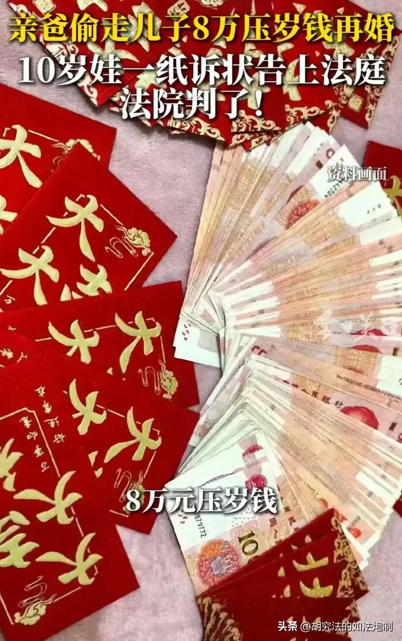 亲儿子不如新媳妇?河南郑州,男子为了再婚,偷拿10岁儿子的8万块钱压岁钱。儿子发现后讨要,可男子却说,你是我儿子,你的钱就是我的钱!儿子无奈把父亲告上法庭,法院这么判了! 父母离婚之后,年幼的小辉刚开始跟随父亲生活。可后来父亲又娶了新媳妇,小辉的生母知道后,担心小辉会因此受委屈,于是便打算把小辉接到自己的身边。 小辉的父亲正有此意,几乎没有任何犹豫便同意了。 跟母亲住在一起之后,小辉的衣食住行自然由母亲负责,此时的小辉已经10岁了,虽然年纪不大,不过小辉也看出来母亲的不容易,他决心为母亲做点什么。 小辉告诉母亲,在这几年的时间里,长辈们逢年过节给他的压岁钱,他一分钱都没花,全部都攒了下来,差不多也有8万块钱了,他打算把这些钱拿出来交给母亲保管。 母亲听完非常感动,他自己也没想到,儿子竟然会如此的懂事。可是让他没想到的是,带他去银行查看儿子账户余额的时候,竟然发现里面一分钱都没有。 由于在此之前小辉是跟着父亲一起生活,银行卡也归父亲保管。 根据《民法典》第20条规定,不满8周岁为无民事行为能力人,由其法定代理人代理实施民事法律行为。 另外,《未成年人保护法》第16条第7项也规定了,未成年人的父母或者其他监护人应当履行下列监护职责:妥善管理和保护未成年人的财产。 由于小辉时年未满8周岁,属于无民事行为能力人,小辉的父母离婚之后,小辉跟随父亲生活,作为监护人,小辉的父亲是有权代为保管压岁钱的。 现在卡里没有一分钱,小辉的父亲不可能不知情。 小辉的母亲连忙联系了前夫,这才知道这笔钱竟然被前夫给偷偷挪用了,而挪用的原因更是让人气愤不已。 原来,前夫准备再婚的时候,由于手头上有些捉襟见肘,于是便动起了儿子压岁钱的念头。在没有给儿子说的情况下,私自把儿子的压岁钱全部取了出来,用于给自己娶新媳妇。 小辉知道后眼泪一下子就流了出来,多年来的委屈在这一刻再也憋不住了。 他哭着告诉母亲,刚开始的时候,父亲对他还算是不错的,可父亲自从娶了新媳妇之后就变了,而他的继母更是对他不管不顾,从来都没有把他当成一家人。 小辉决定把这笔钱给要回来,没想到父亲却理直气壮的表示:你是我的儿子,你的就是我的! 不仅如此,小辉的父亲还痛骂他的前妻,称这都是受到了前妻的教唆。 实在没有办法了,小辉一纸诉状把父亲告上了法庭要求父亲全额退还压岁钱。 法院审理时认为,小辉的压岁钱属于个人财产,受到法律的保护。其父亲作为监护人,在未明确告知的情况下擅自占用侵犯了小辉的财产权。 根据《民法典》第657条规定,赠与合同是赠与人将自己的财产无偿给予受赠人,受赠人表示接受赠与的合同。 压岁钱是长辈对未成年人的无偿赠与,钱款交付、接受时,所有权即归未成年人。也就是说,小辉的父亲有妥善保管财产的义务,并没有私自挪用的权利。 为此法院判决父亲返还小慧的压岁钱本金以及利息共计82750元。 相信很多家长都像小辉的父亲那样,认为孩子所得到的压岁钱并非是真正属于孩子,毕竟这些压岁钱要么是长辈赠予,要么是自己亲朋好友的赠与。 更重要的是,别人给孩子的压岁钱,自己还要还回去,这可都是真金白银换来的。从这方面来讲,父母收下压岁钱好像也没什么不合理。 不过也有人认为,之所以会有这样的情况,归根结底是因为作为父母根本就没有保护孩子财产权个人尊严的意识。 一味的认为孩子是自己的,平时供他吃,供他穿,只要老老实实听话就行。实际上,父母如此行为不仅仅是伤害了孩子的自尊心,同时也失去了孩子对父母的信任。 对此你怎么认为?