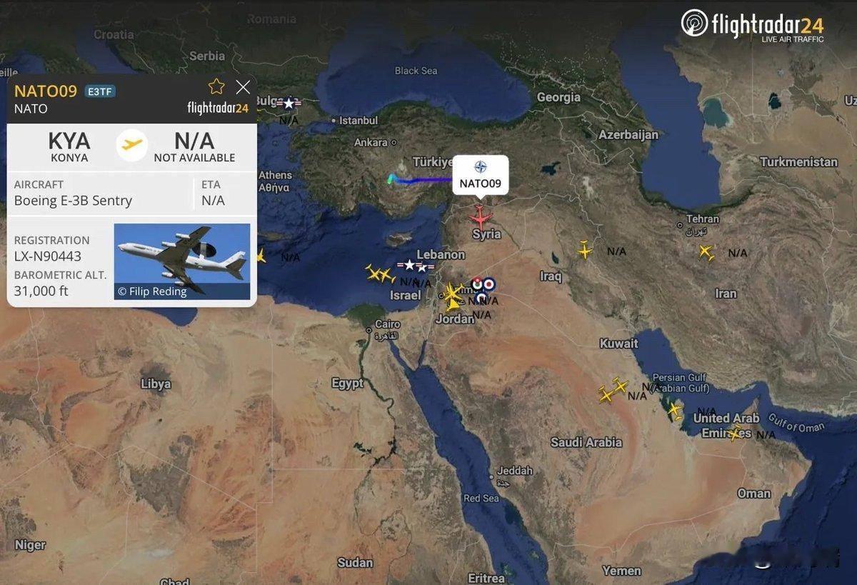 突发新闻:土耳其向美国开放其军事基地,用于对伊朗开展军事行动。 北约E-3B“哨兵”预警机连续第三天从土耳其科尼亚空军基地起飞,前往伊朗执行侦察任务。