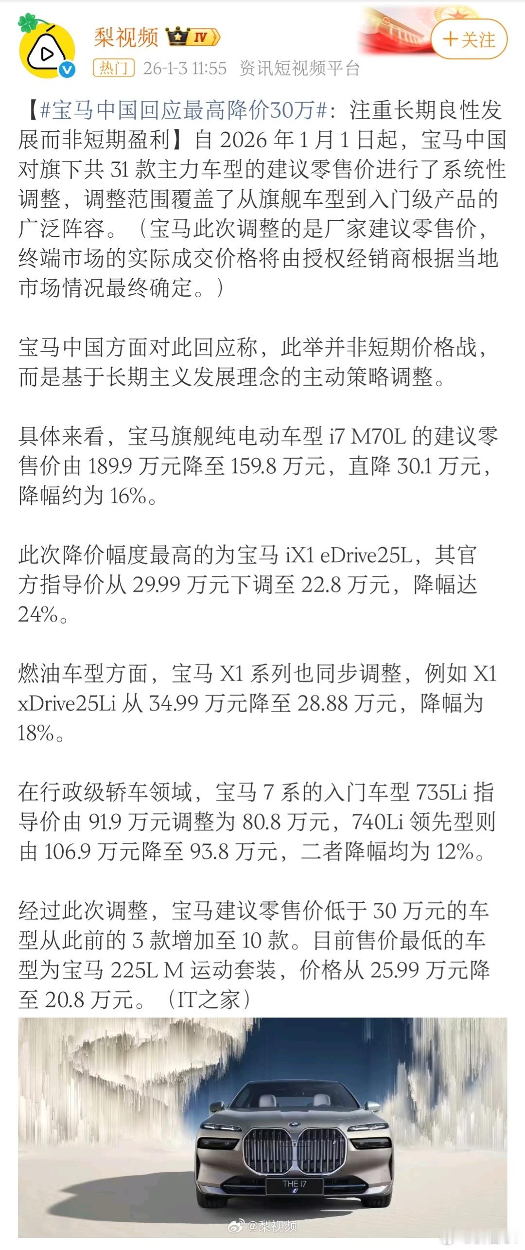 宝马7系,一降再降。