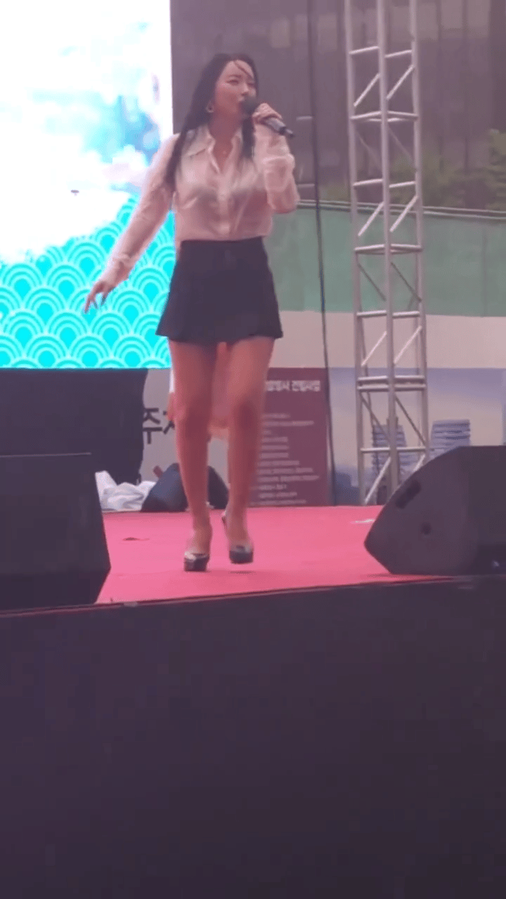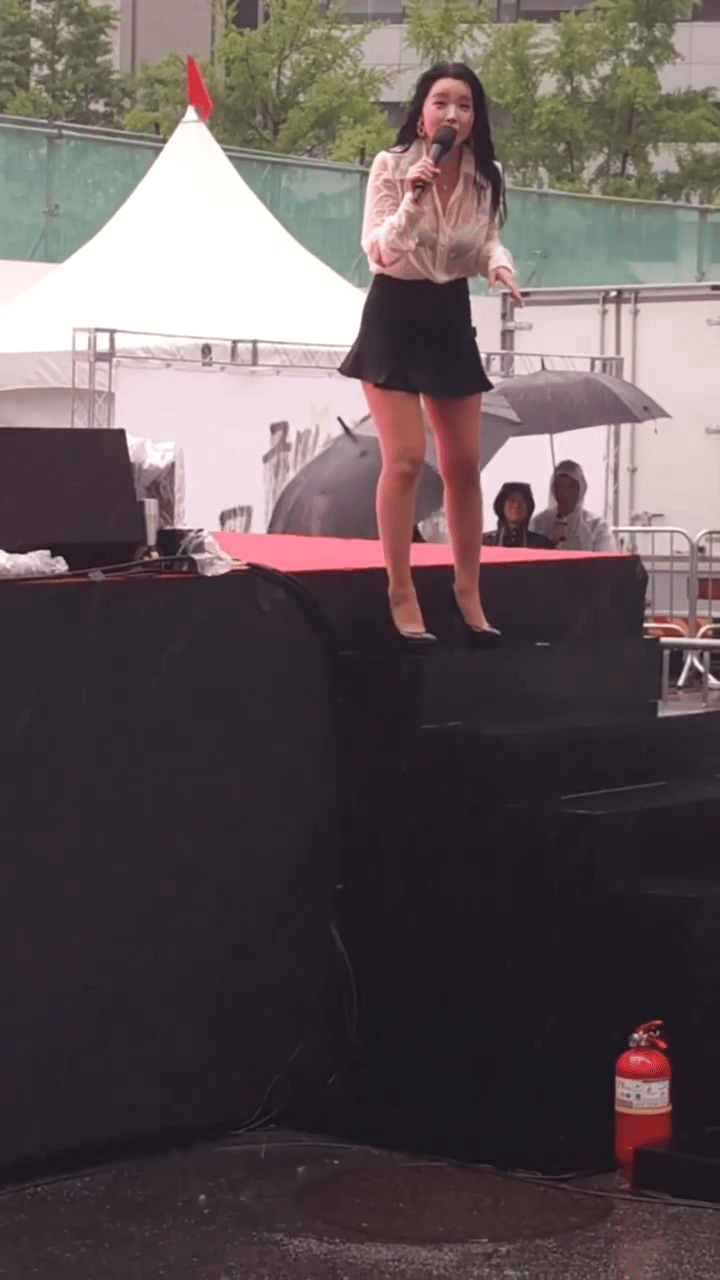 洪真英闹着大雨为老百姓演唱,舞台上倾情演唱的她太动人了!我们中国娱乐圈的那些明星很少人能做到这样吧!