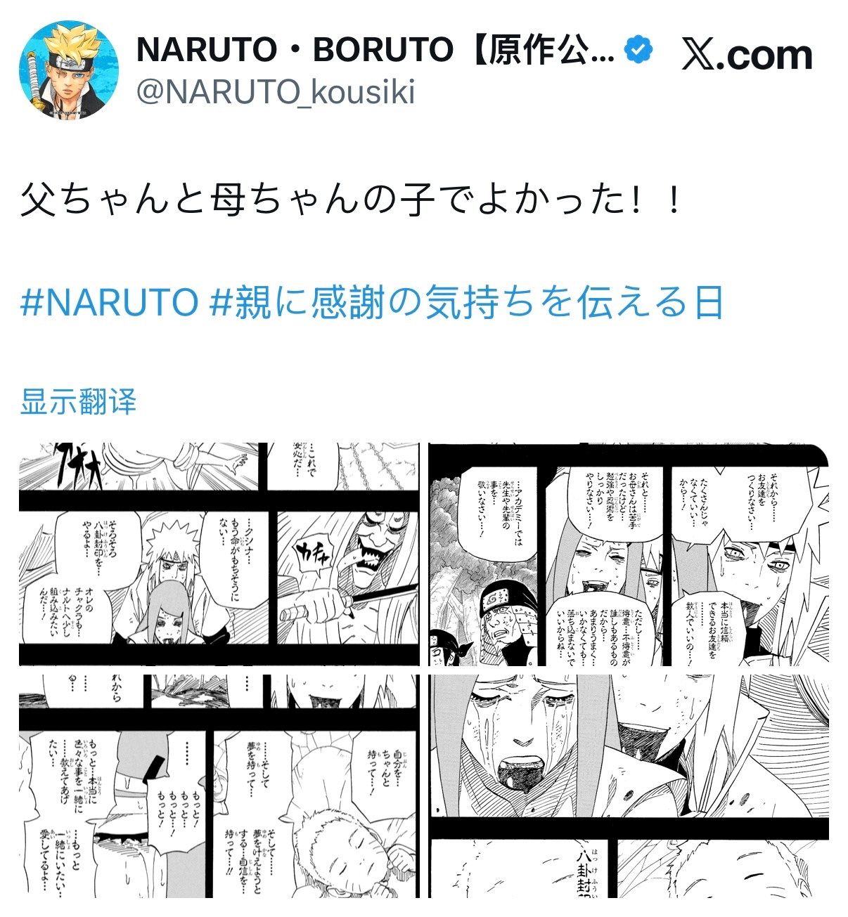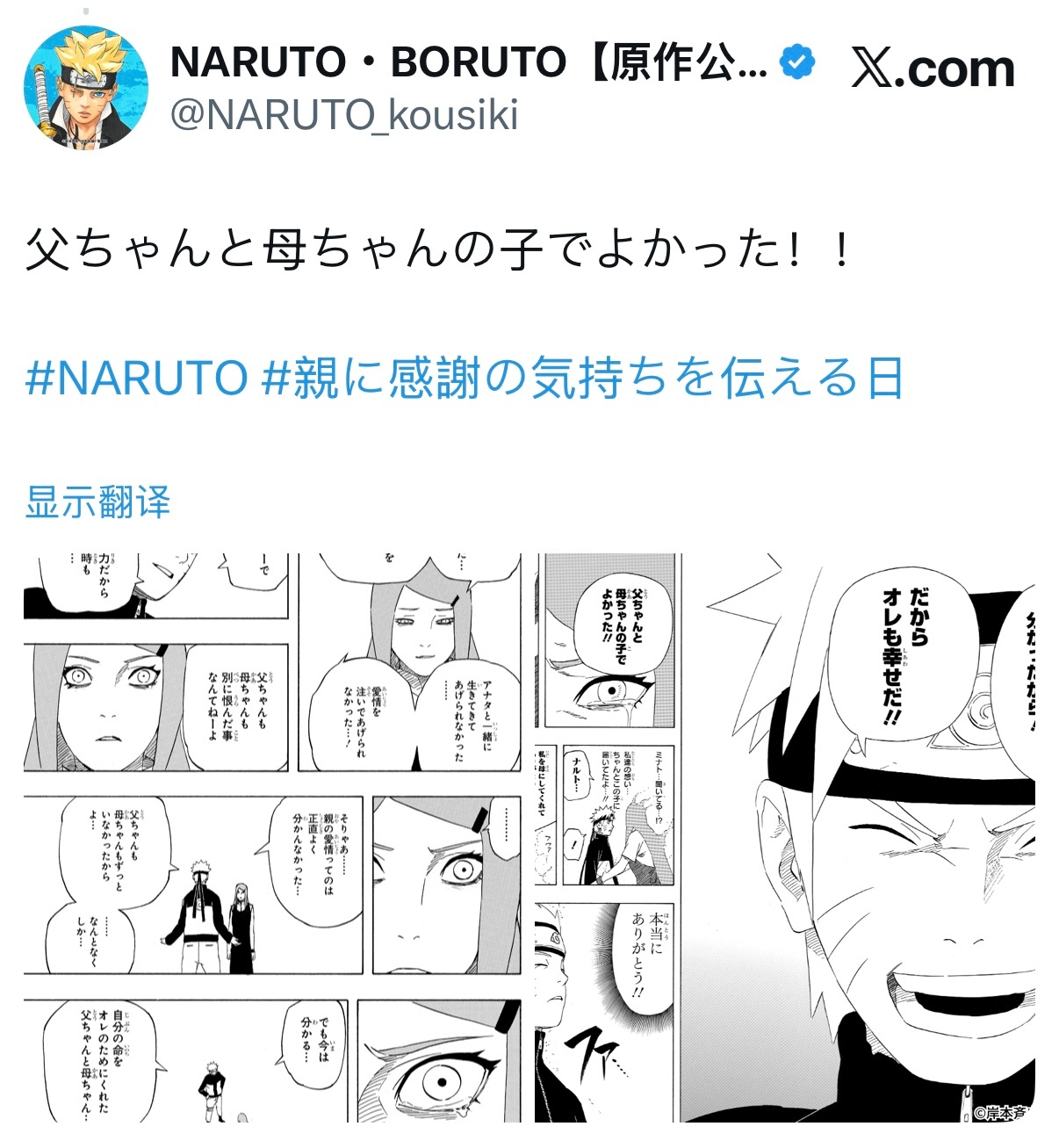 【火影忍者官方最新发布了推文】“能成为爸爸妈妈的孩子真是太好了”!!火影忍者漩涡