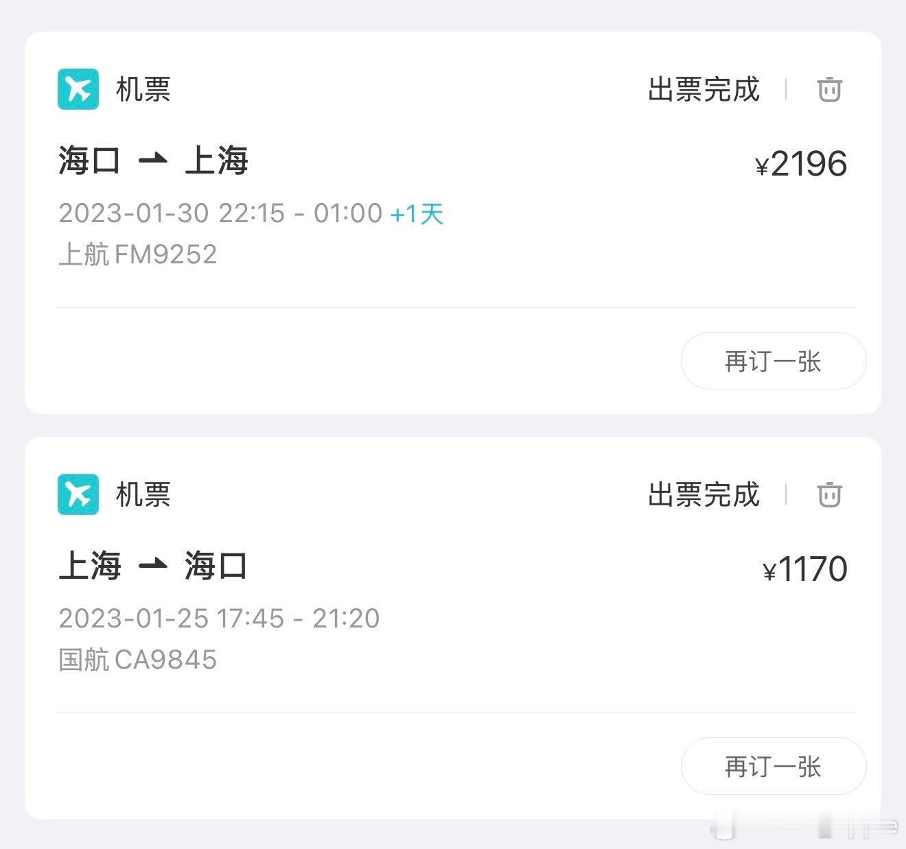 想到23年春节和家人在海口过年,我的返程票是半夜刷App捡漏的,两千出头才回到上海工作的我属实算买到了相对便宜的票当时也想过不行就买张去国外的机票然后在上海转机,但是无奈当时没有带护照 还想过租车先去广州或深圳,但实在太折腾。终于在半夜刷到了第二天的正常价格机票,虽然是全价机票,不过在动辄五位数起步的机票价格里已然算良心票价