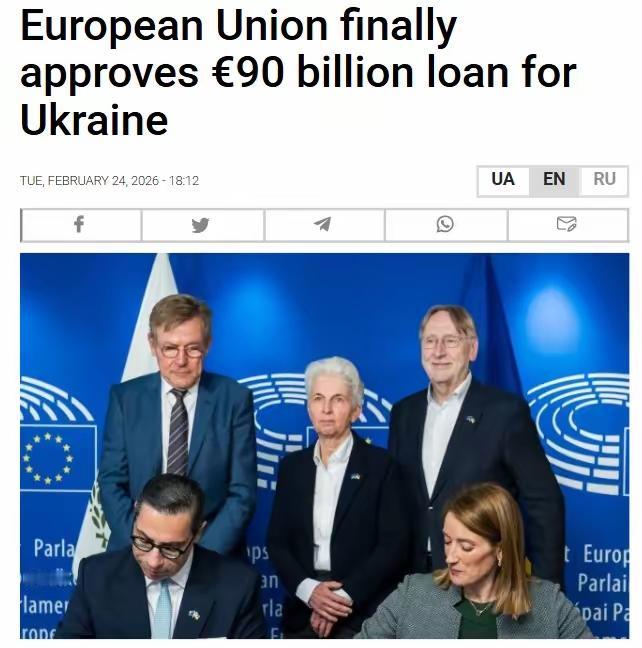 终于!900亿欧元有了着落!欧盟签署文件,向乌克兰提供900亿欧元贷款。然而,欧洲议会主席罗伯塔·梅索拉在推特上表示,这笔资金要等到春季才会发放。梅索拉表示:“刚刚代表欧洲议会签署了900亿欧元的乌克兰支持贷款。” 她澄清,这笔贷款旨在:支持基本公共服务的运作、保持乌克兰的防御能力、保障整体安全和自由、实现真正且可持续的和平、保障乌克兰在欧洲的未来。 罗伯塔·梅索拉是欧洲议会历史上最年轻的主席,这位来自马耳他的政客,长期站在欧盟对乌政策的最前沿,她的每一次公开表态,都是欧盟内部多方博弈后的最终定调。 这份签字仪式更像一场对外展示团结的政治仪式,掩盖不住资金延迟拨付背后的重重矛盾。 欧盟27国在2025年底历经17小时马拉松谈判才敲定方案,短短两个月后,匈牙利就以能源过境问题行使否决权,斯洛伐克紧随其后表达不满,中东欧国家与德法主导的援乌路线彻底撕破脸面。 春季发放不是简单的流程等待,是欧盟不得不面对的现实阻碍。联合举债的方案需要24个成员国完成国内审批,资金归集、监管细则、用途划分都要逐一落地,任何一个环节卡壳,都会让拨付时间继续延后。 乌克兰的财政早已濒临崩溃,国际货币基金组织测算,未来两年该国资金缺口超过1300亿欧元,900亿欧元贷款只能覆盖部分需求,即便按时到账,也只能勉强维持国家运转。 这笔贷款被明确划分为两部分,600亿欧元定向用于国防与武器采购,300亿欧元支撑政府公共服务。梅索拉口中的基本公共服务,对应着乌克兰水电、医疗、教育的日常支出,冲突持续损毁大量基础设施,资金经过多层分配后,能真正落到普通民众身上的份额十分有限维持防御能力是欧盟的核心诉求,前线弹药补给、装备维护都离不开持续资金注入,欧盟很清楚,一旦断供,战场态势会立刻出现反转。 欧洲自身正承受着巨大的经济压力,2025年欧元区GDP增速仅1.3%,德国制造业持续低迷,多国家庭能源支出较冲突前上涨超三成。 欧盟拿出的不是闲置资金,是在国际市场举债筹集的款项,每年约30亿欧元的利息由欧盟预算承担,最终会分摊到各国民众身上。民间反对声音不断高涨,越来越多欧洲人认为,本国民生问题应该优先于境外长期援助。 梅索拉提到的可持续和平与欧洲未来,更像是贴合地缘政治的话术。冲突延续四年,欧盟没有能力推动双方达成实质性停火,只能用资金输血维持现状。将乌克兰绑定在欧洲阵营,挤压俄罗斯战略空间,才是这笔援助的真实目的。 欧盟放弃动用被冻结的俄罗斯资产,选择自行举债,既是内部意见无法统一,也是不想彻底激化与俄罗斯的矛盾。 欧洲议会投票时458票赞成、140票反对、44票弃权的结果,直观展现了内部裂痕。波兰、立陶宛等国将援乌视为安全保障,匈牙利、斯洛伐克则紧盯能源与经济利益,南欧国家不愿承担过多分摊份额,不同诉求让所谓的团结变得脆弱不堪。 梅索拉作为欧盟核心机构负责人,只能在公开场合强化统一立场,无法弥合各国根深蒂固的利益分歧。 这笔贷款不是无偿馈赠,是需要乌克兰未来偿还的债务,冲突结束后,该国要背负沉重的债务包袱,经济复苏会被长期束缚。 乌克兰政府拿到的只是一张远期支票,前线士兵的装备补给、后方民众的生活保障,都等不及春季的姗姗来迟。 欧盟陷入了进退两难的境地,停止援助意味着前期投入付诸东流,持续输血又要不断承受国内与外部的双重压力。 地缘博弈从来没有温情的童话,巨额资金换不来即刻的和平,也填不满冲突带来的深渊。欧盟的纠结、乌克兰的困境,都在印证一个道理,和平从来不是靠资金堆砌,而是靠平等对话与相互妥协。 各位读者你们怎么看?欢迎在评论区讨论。