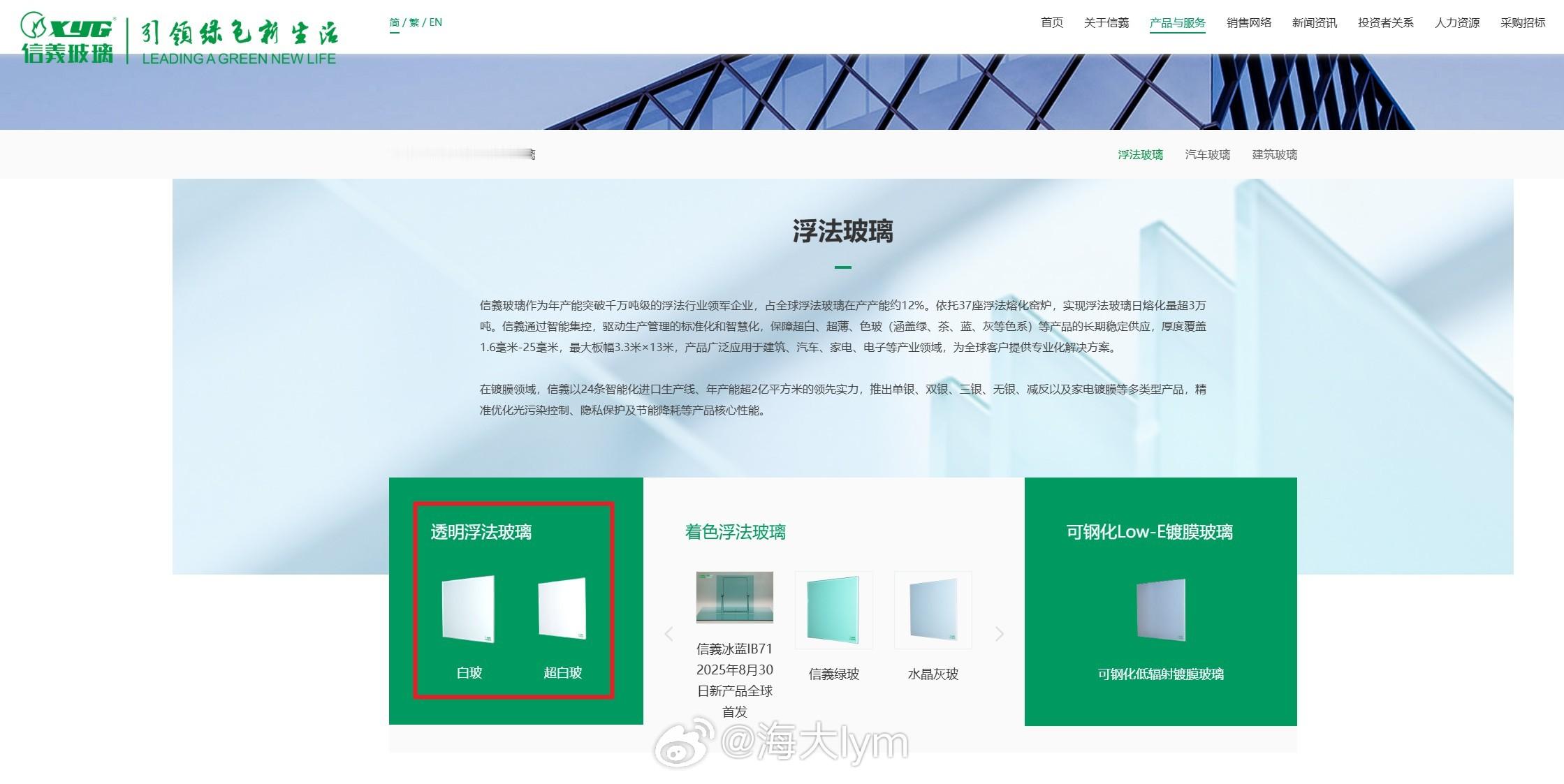 刚刚特地看了一下玻璃龙头企业信义集团的官网介绍,在产品分类中,透明浮法玻璃分为“白玻和超白玻”。