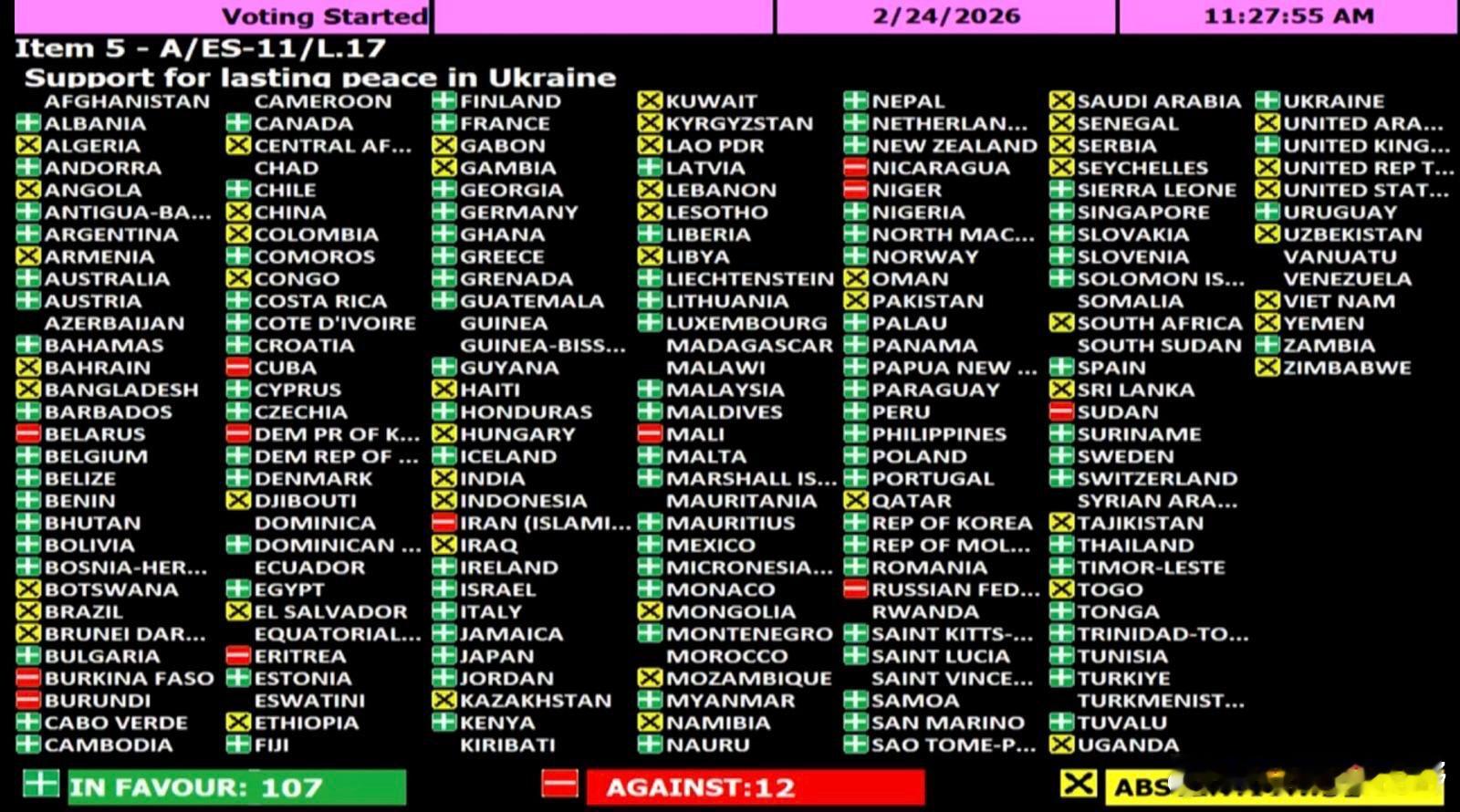 这次联合国关于乌克兰战争的投票,中国和美国投的是一样的。