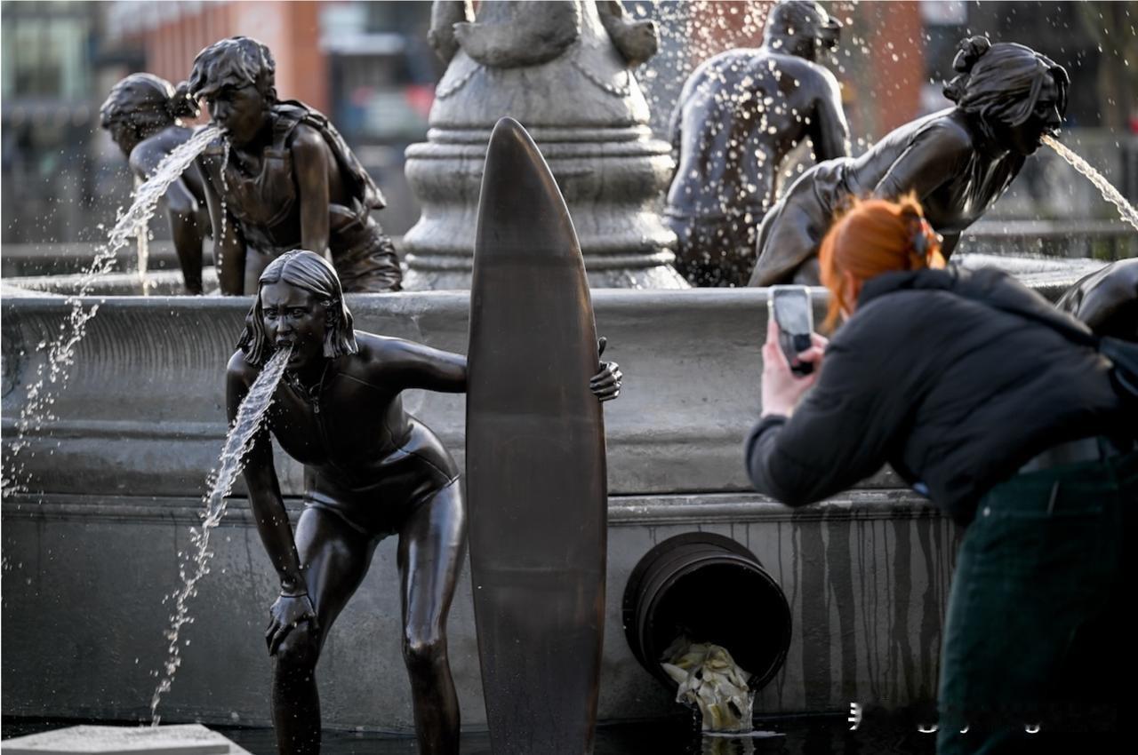 🇬🇧昨天,伦敦一座别具一格的喷泉落成,名为“污垢喷泉”。 英国第四频道(Channel 4)正用这种别出心裁的方式宣传其关于英国水道污染的纪录片系列。该系列纪录片揭露了污染问题,导致成千上万的人在那些本应“安全”的海滩游泳时感染危险的传染病。正如你所见,喷泉上方是一位神情满意的水务和污水处理系统经理,手里提着一箱钱。 没错,这个话题永远不会过时。毕竟,早在苏联时期,鳄鱼盖纳就曾与这类经理作斗争!不过,你不得不承认,当年俄国人可没想到会用这种方式来宣传切布拉什卡的动画片!