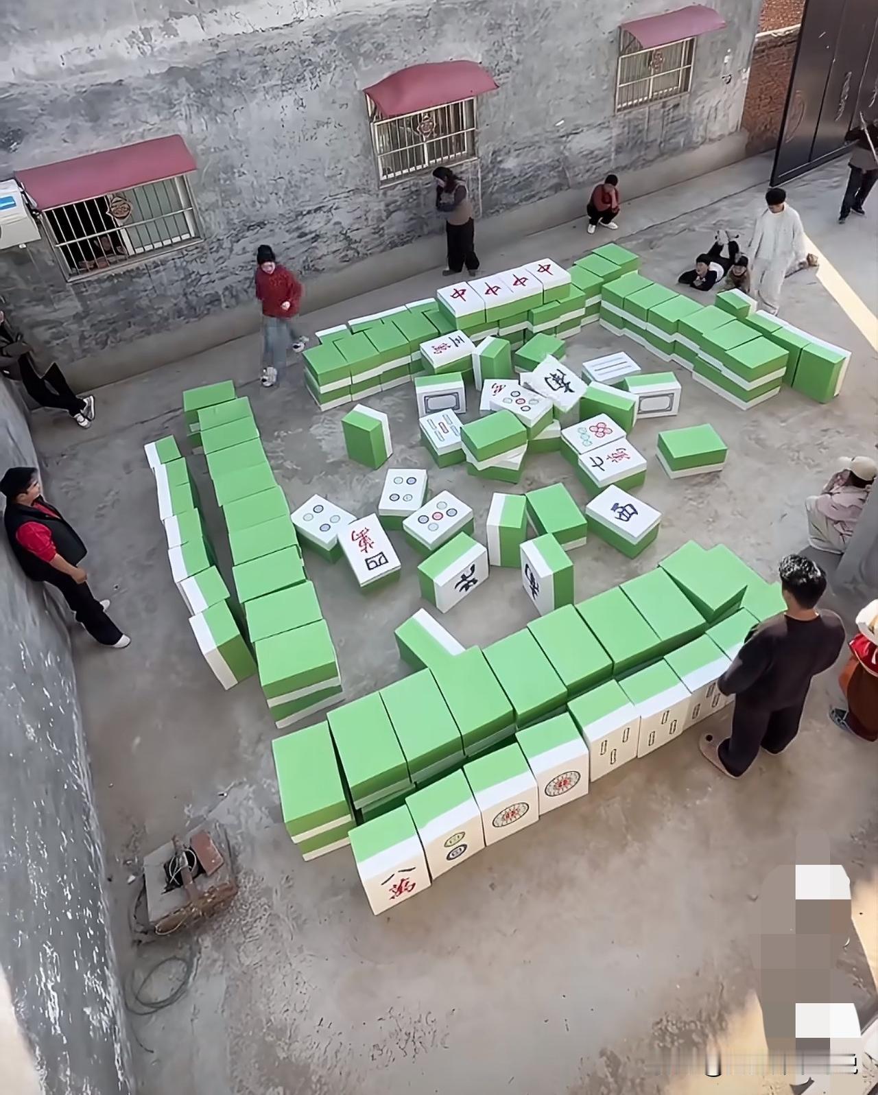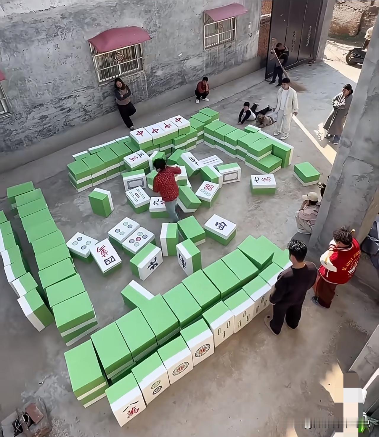 这样打麻将再也不用担心对身体不好了,不但如此,还能在娱乐的时候锻炼身体。不知道是哪位鬼才发明超级麻将,每一块麻将居然有簸箕那么大。整桌麻将恐怕需要在院子里面才打得开,每打一张麻将都要来回抱着麻将走好几十步。按照这个节奏,估计打半天麻将需要走好几万步,而且一点儿都不带累的。我感觉这种巨型麻将超级适合春节玩儿,不但可以打发时间,而且还可以消化多余的营养,值得推广成体育运动。