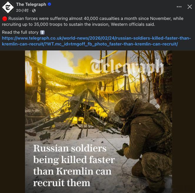 每日电讯报报道,去年11月开始,俄罗斯每月遭受大约40000人的伤亡,但是他们每个月只能招募大约35000人来维持前线。35000这个数据仍然很大,现在的拉新成本每个需要相当于几十万人民币的钱。