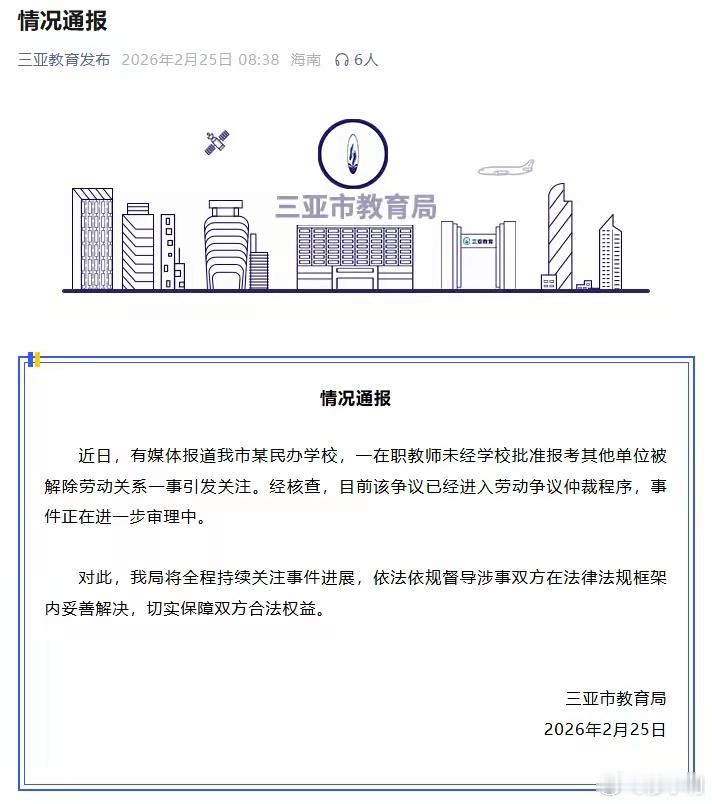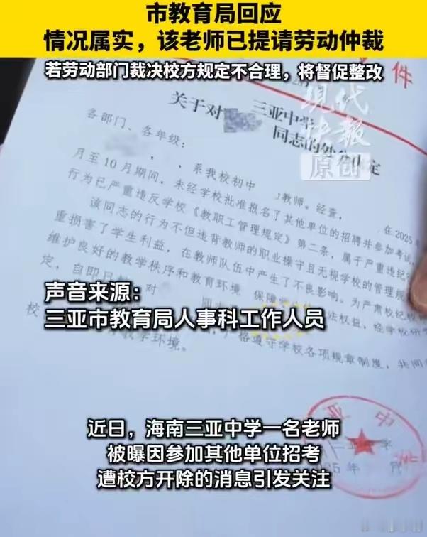 三亚通报在职教师被开除校方以"未经批准报考他单位"为由解除劳动关系,这种将教师职业发展权与劳动合同捆绑的做法,本质上是对劳动者基本权利的粗暴践踏。劳动合同不是卖身契,打工人想找更好的发展机会是人之常情,就算签了相关条款,也得先看看是否符合法律规定,能不能真正约束到人。