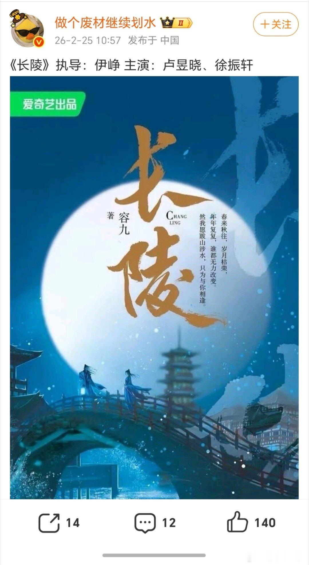 网传《长陵》主演:卢昱晓、徐振轩我替甄选接了!永接网传男主🫓!