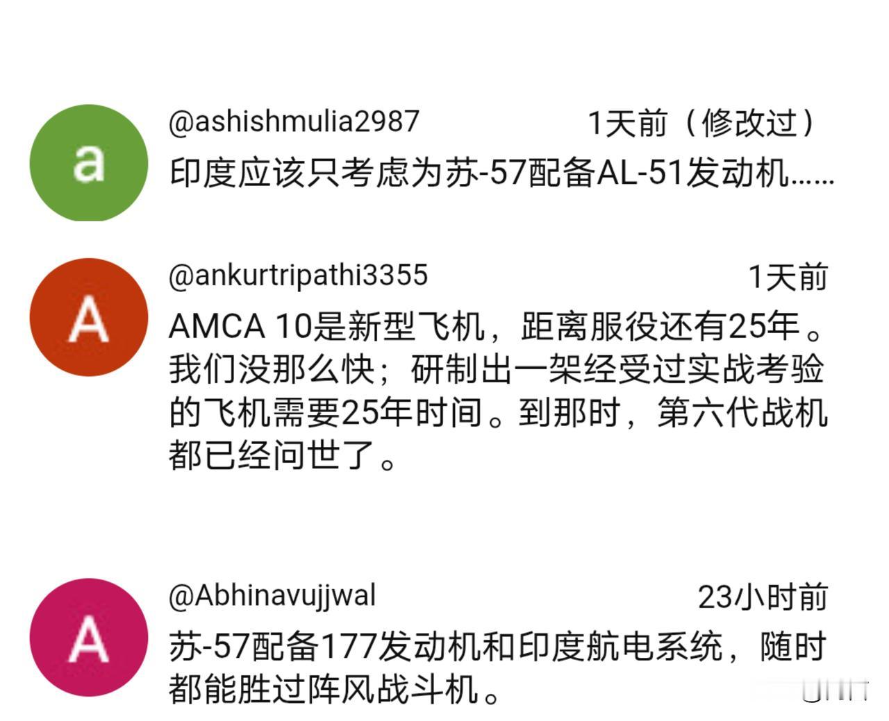 局面将被打破!印度空军或迎来第一款五代隐身战机。 2月24日,据一位印博主援引印媒的消息透露,继阵风战机之后,印度空军还将引进俄罗斯苏57战机,当前双方已进入谈判关键阶段。值得注的是,该博主还表示,印空军的苏57将配备印度国产航电系统与武器等。 印国内从上到下对五代隐身战机渴望已久,一旦装备了苏57其短板会得进一步补齐,战力也将会进一步提升。对于能够引苏57,印度网友自然是欢迎…