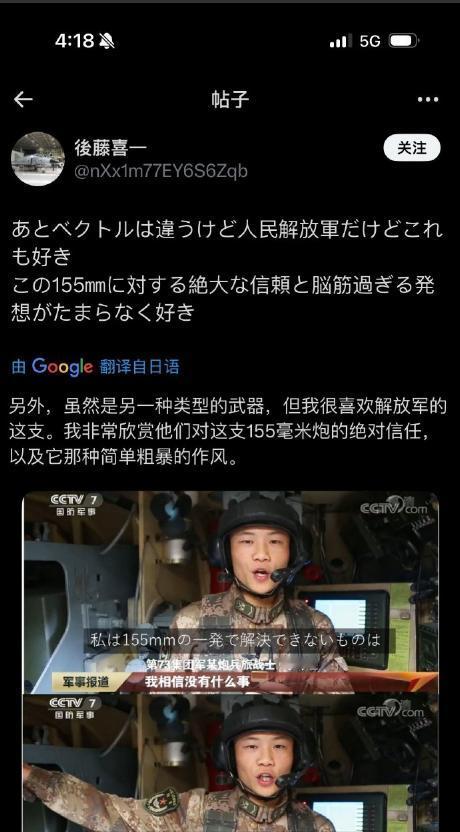 解放军战士在日本推圈爆火,原因竟然是因为一句话!这位战士面对镜头,没念稿子,也没喊口号,就是用一种特别平常的语气说了一句:“我相信没有什么事情是一发155毫米炮弹解决不了的,如果有,那就再来一发。” 就这么一句话,配上咱们国产155毫米自行火炮怒吼的画面,传到日本后,直接把他们的推圈给整破防了。而且更有意思的是,还圈粉无数。这实在是没想到的。 155毫米不是普通的数字,它是现代陆战火力的核心计量单位,是各国陆军火力体系里的“硬通货”。 中国的155毫米自行火炮,早就不是十年前的水平,现在列装的PLZ-05系列,尤其是05B改进型,已经达到世界顶尖水准。 52倍径的长炮管,搭配先进的数字化火控系统,抗干扰能力强,还能和整个战场指挥系统实时互联,反应速度和打击精度都拉满。 它的底盘从6对轮升级到7对轮,稳定性更好,无人炮塔设计让承载能力和信息化水平又上了一个台阶,从发现目标到完成打击,整个流程能压缩到分钟级。 发射常规高爆弹时,射程就能突破40公里,要是用上增程弹,射程还能进一步拓展,而且精度极高,基本能做到指哪打哪。 再看看日本的同类装备,陆上自卫队现有约300套155毫米火炮系统,主力是99式和19式自行榴弹炮。 99式是履带式底盘,52倍径炮管,发射常规弹最大射程才约30公里,机动能力一般,信息化水平也跟不上时代。 19式改成了8×8轮式卡车底盘,机动性能好点,但还是受限于标准弹药的弹道极限,射程没本质提升。 日本现在还在搞155毫米火炮的远程化升级,想把射程提到150公里,说白了就是补自己的短板,可就算真升级成功,和中国现役的155毫米火炮比,也还是有明显差距。这种差距不是靠临时升级就能抹平的,是多年技术积累和投入的结果。 日本推圈会被这句话破防,核心是当地的军事焦虑被精准击中。二战后日本的军事发展一直被和平宪法束缚,可这些年他们一直在打擦边球,搞“自卫队”扩编,升级武器装备,明里暗里想突破限制,重拾军事大国野心。 日本对周边国家的军事力量一直很敏感,总担心自身安全受威胁,尤其是对中国的国防建设,长期抱着敌视和警惕的心态。 过去中国表达军事态度,大多比较含蓄,用词讲究分寸,不会这么直白地亮出“真理”的计量单位。 这次战士的话,没有任何修饰,就是最硬核的实力宣言,配上火炮怒吼的画面,直接打破了日本对自身军事安全的幻想。 在日本推圈的语境里,这种直白的实力展示冲击力极强。当地很多人对军事话题本来就很关注,又长期被西方舆论洗脑,对中国的军事实力认知还停留在过去。突然看到这样一段视频,那种认知落差带来的冲击特别大。 他们不得不承认,中国的155毫米火炮已经不是他们能轻松应对的存在,这种实力碾压感,让他们的焦虑彻底爆发。 而圈粉的背后,是这种表达戳中了很多人对“实力即正义”的朴素认同。不是喜欢战争,而是认可这种不绕弯子的底气,认可中国有能力守护自身利益的事实。 这句话能火,更关键的是背后是中国国防观念的深刻变化。过去很长一段时间,中国的军事表达都偏向低调内敛,讲究“不怒自威”,但这并不代表实力不足。只是在不同的发展阶段,选择了不同的表达方式。 现在不一样了,随着国防实力的快速提升,中国越来越有底气直白展示自己的力量。 这种变化不是突然的,是从歼-20隐身战机亮相,到国产航母下海,再到055大驱成军,一步步积累起来的。每一次装备升级,都是一次底气提升,也让军事表达越来越自信。 这种自信不是凭空来的,是建立在扎实的国防建设基础上。中国的军工体系早就实现了自主可控,从核心部件到弹药供应,都能自给自足。 155毫米火炮的弹药种类也很丰富,除了常规高爆弹,还有精确制导炮弹、燃烧弹、杀伤爆破弹等,能应对不同的战场场景。 而且配套的弹药输送车、指挥车、侦察车等装备也很完善,形成了完整的火力打击体系,不是单靠一门火炮作战。这种体系化的优势,让155毫米火炮的作战效能被无限放大,也让那句“再来一发”的底气更足。 从国际传播的角度看,这段视频在日本推圈的爆火,也是中国软实力提升的体现。 过去西方一直主导国际舆论,对中国的军事话题总是刻意抹黑和歪曲。现在中国的军事内容能直接走进日本的舆论场,用最直接的方式展示实力,还能获得认可,说明这种抹黑已经越来越没市场。 日本民众开始用更客观的眼光看待中国的国防建设,不再被片面的舆论引导。这种传播效果,比任何官方声明都更有说服力。