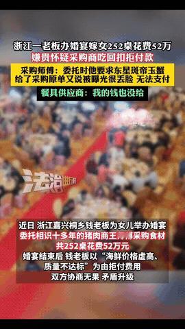 “想白嫖?”浙江,一男子花52万给女儿办婚宴,一口气摆了252桌,可没想到,婚宴结束后,男子却以 “海鲜价格虚高、质量不达标、怀疑王师傅吃回扣”为由拒付费用,不仅饭钱不给,而且连提供250多桌餐具的供应商,也没给钱!网友:不付款不是因为席太贵,而是因为没收回来钱! 为嫁女摆足排面,252桌豪华宴席,东星斑、帝王蟹全安排上,全程风光无限,宾客吃得赞不绝口。 事前说预算不封顶,事后却翻脸不认人,以海鲜价高、质量不达标为借口,52万费用一分不想给。 连提供餐具的供应商,也被他拖欠尾款,实在太不地道。 面子摆得比谁都大,里子却丢得一干二净。生意场上最值钱的不是排场,是信誉。靠赖账省成本,只会彻底败光人品。 好在法律不护短,法院已判决支付44.7万,恶意拖欠终究要买单。