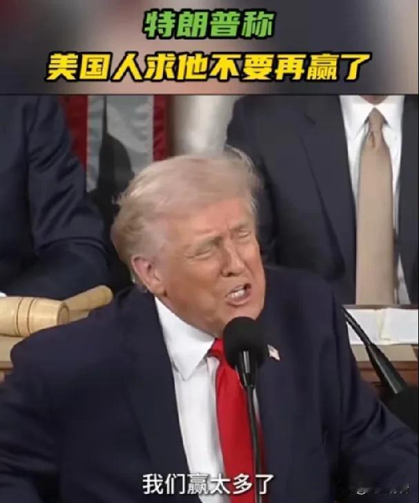 特朗普:人们来求我说,求求您,总统先生,我们赢得太多了,我们快承受不住了! 据《今日俄罗斯》报道,当地时间2月24日,美国总统特朗普在发表其第二任期首次国情咨文演讲时表示,“美国赢太多了,多到都不知道该怎么办才好”。特朗普还说:“人们来求我,说,求求您,总统先生,我们赢得太多了,我们都快承受不了了,我们这个国家不习惯一直赢。在你出现之前,我们总是在输,但现在我们赢得太多了。我说,不,不,不,你们还会继续赢。你们会比以往任何时候都大赢特赢。” 在当天的演讲当中,特朗普在讲话开头宣称,“这是美国的黄金时代。”“我们的国家回来了,比以往任何时候都更大、更加美好、更加富裕、更加强大。”他表示,“展望未来,工厂、就业机会、投资以及数万亿美元将持续涌入美利坚合众国,因为我们终于有了一位将美国利益置于首位的总统,真正践行美国优先。”“我把美国放在第一位,我爱美国。” 据路透社报道,此次年度讲话对特朗普至关重要,因为他的支持率正在下滑:伊朗局势引发的担忧日益加剧;美国民众也正努力应对高昂的生活成本。 演讲现场,特朗普说,“如果你同意我的观点,请站起来表示支持:美国政府的首要职责是保护美国公民,而不是非法移民。”然而,现场的民主党议员一律稳坐不动,与起身欢呼鼓掌的共和党议员形成鲜明对比。面对此景,特朗普露出了无奈且不悦的神情。 此外,演讲仅开始一分钟左右,手持“黑人不是猿猴”标语的得克萨斯州民主党众议员阿尔·格林便被众议院警卫官带离议事厅。美媒解读称,格林所持标语是在影射此前特朗普在其社交媒体“真相社交”发布的一段视频,该视频将美国前总统奥巴马及其夫人描绘为猿猴。