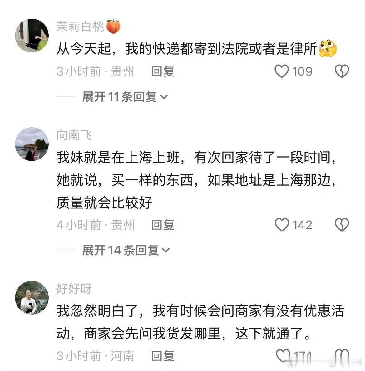太过分了!评论区有网友说以后买东西都先写北上广 等商家发货再改地址 真的无语