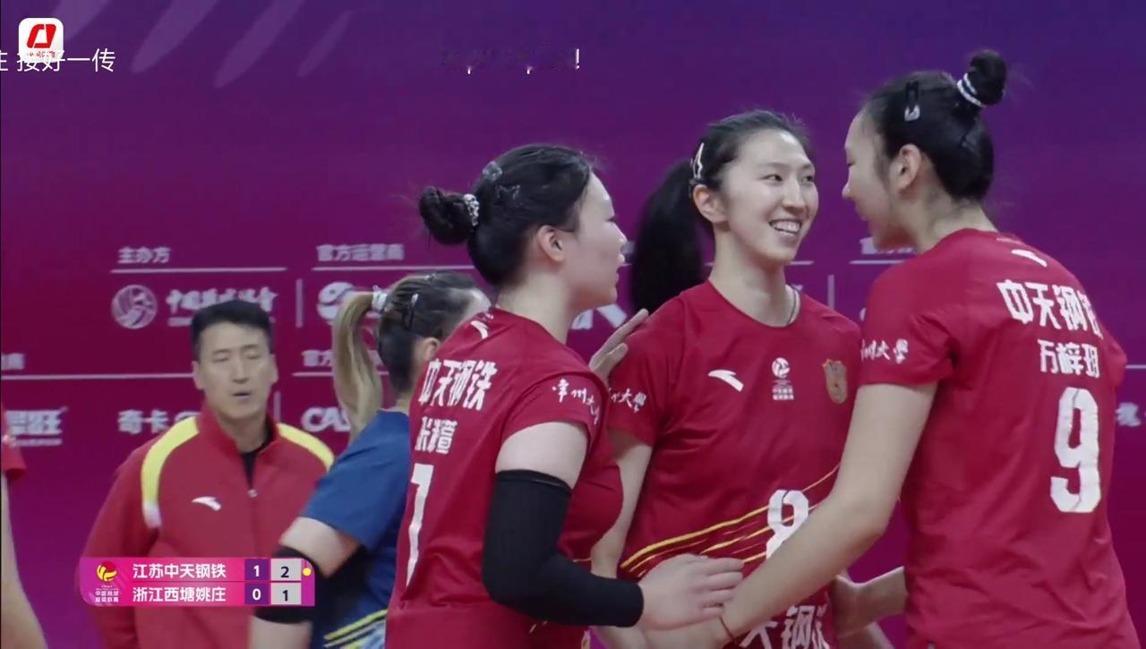 【女排超级联赛】季后赛:江苏——浙江 实时战况: 2月25日晚19:00时,全国女排超级联赛第十五轮江苏——浙江的比赛在常州打响。第一局开始,唐欣发球,2:0,吴梦洁。2:1,唐欣发球下网。2平,3:2,吴梦洁。3平,倪梦洁。3:4,浙江发球得分。4平,周页彤。4:5,刘雨快攻。4:6浙江领先。5:6,吴梦洁。7平,8平,江苏10:8反超比分。11:8,江苏领先,浙江暂停。12:8,13:8,周页彤。13:9,14:9江苏领先。15:11,16:11,16:12,17:12唐欣。18:12,万梓玥拦网。浙江暂停。19:12,吴梦洁。21:12,23:13,江苏领先。23:14,24:14,25:14,江苏胜第—局,大比分1:0,江苏领先! 第二局比赛正在进行中……