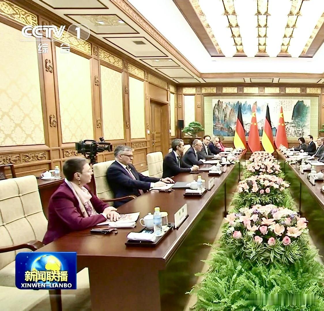 国家元首会见德国总理默茨。 背景是艺术大师刘海粟创作的题字作品: 黄岳雄姿峙古今 百年九度此登临 目空云海千层浪 耳熟松风万古音 莲座结跏疑息壤 天都招手上遥岑 中有彤彤报国心 来源:2月25日《新闻联播》