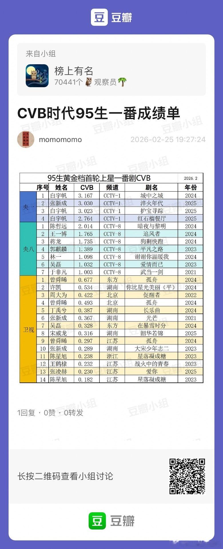 95生一番CVB收视率数据一览白宇帆“一骑绝尘”央一破3%:白宇帆、张新成央八破2%:陈哲远