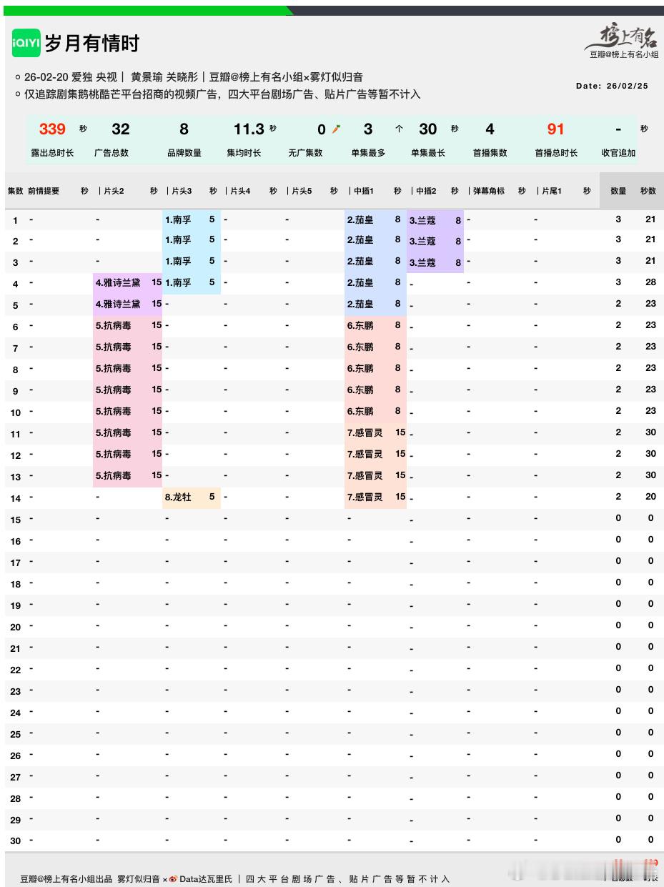 招商最新单集保持2广,已播14集,8品牌,总时长339s(仅视频广