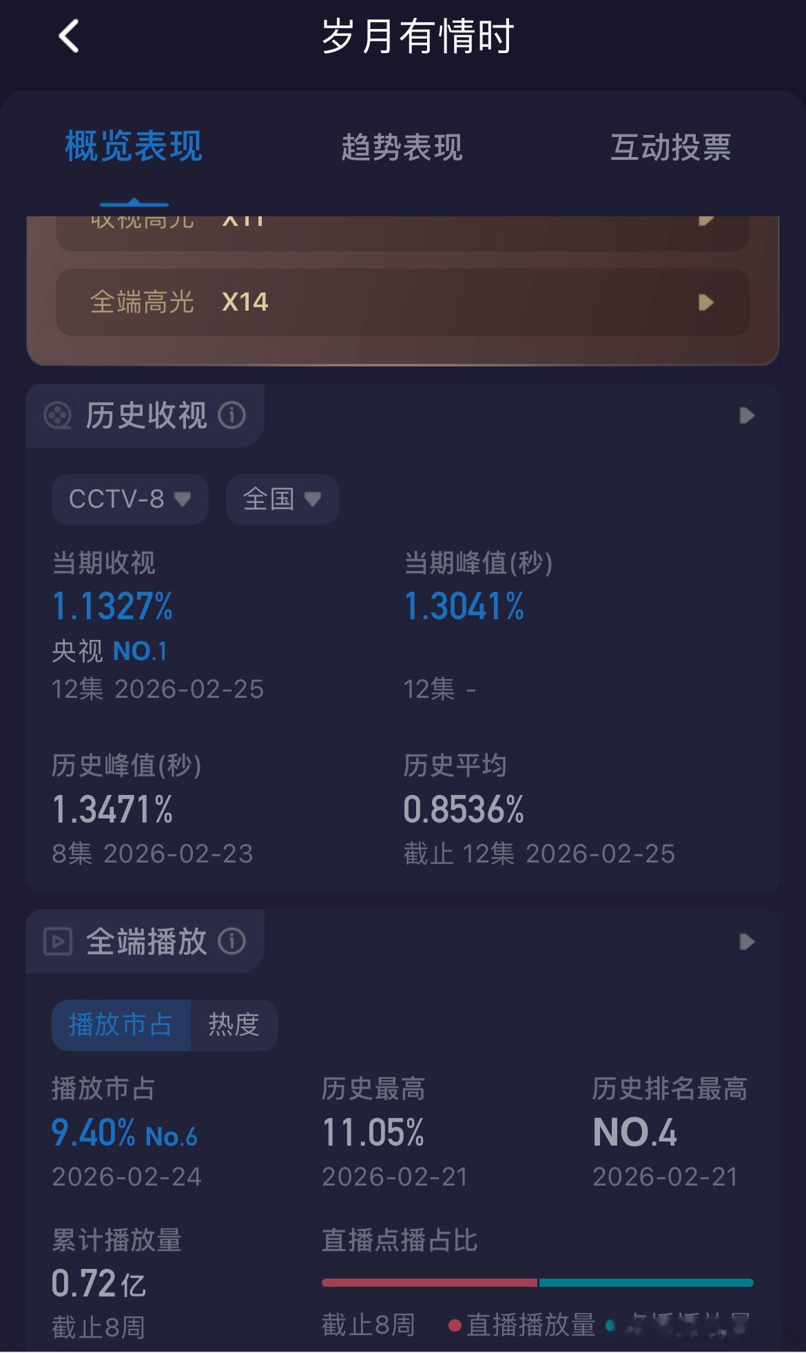 酷云收视当期1.123%(傍晚档)1-12集集均0.8536%