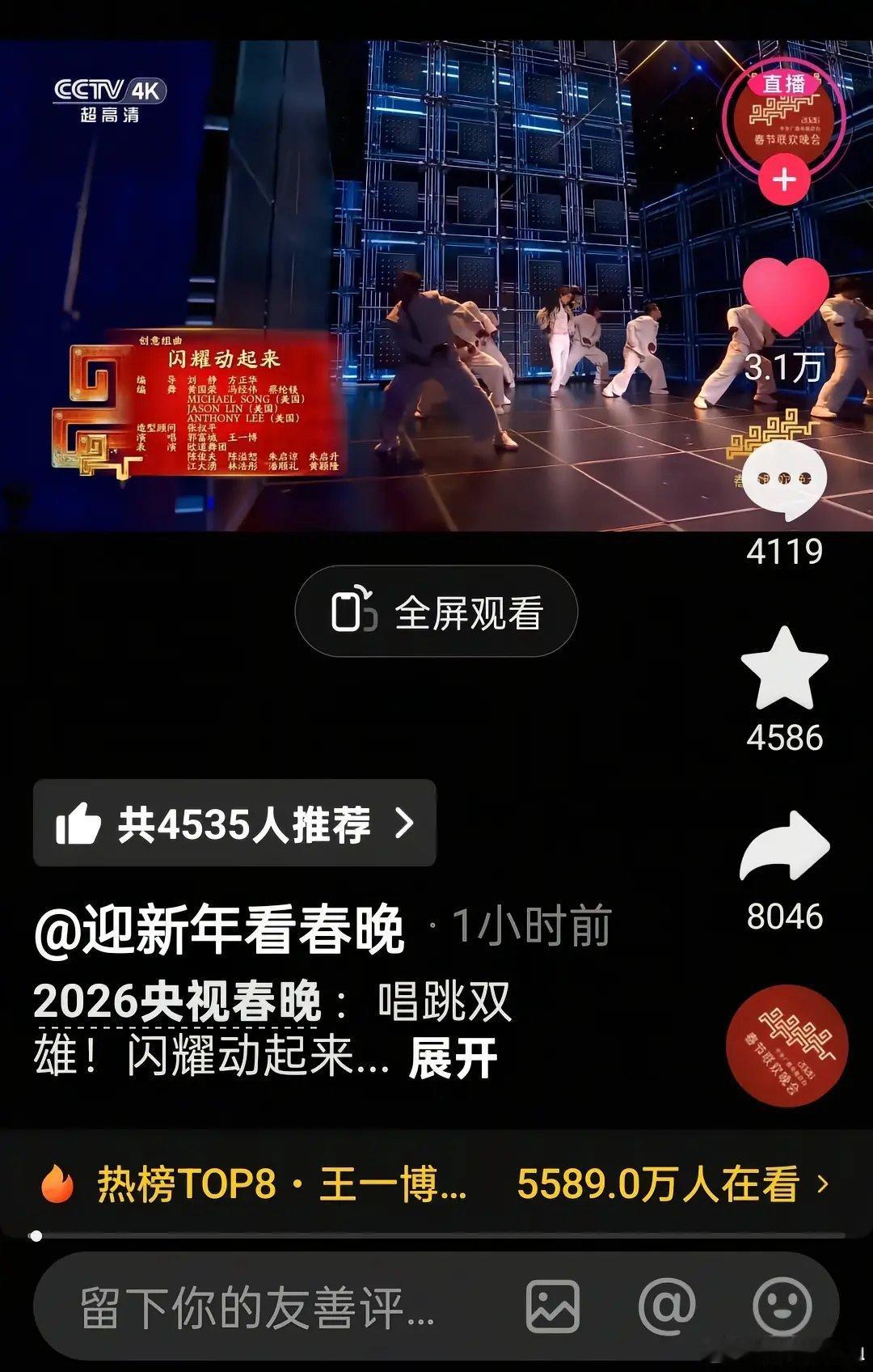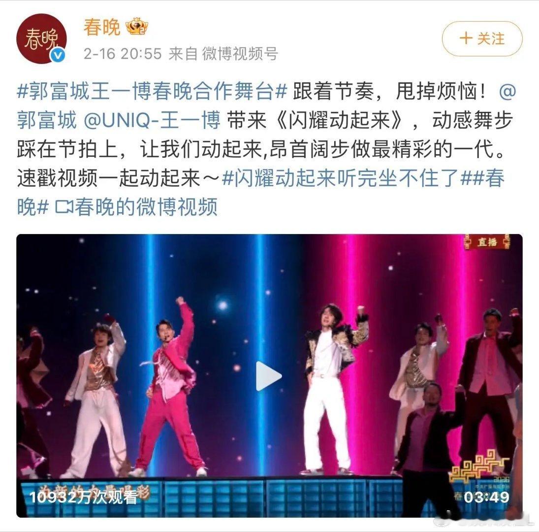 王一博《闪耀动起来》50亿曝光,全平台屠榜!,直拍5.5小时破亿,微信指数连续4天破亿,最高2.63亿刷新纪录。微博+抖音+小红书全面霸屏,春晚大盘被吸干!这就是实力顶流的绝对统治力