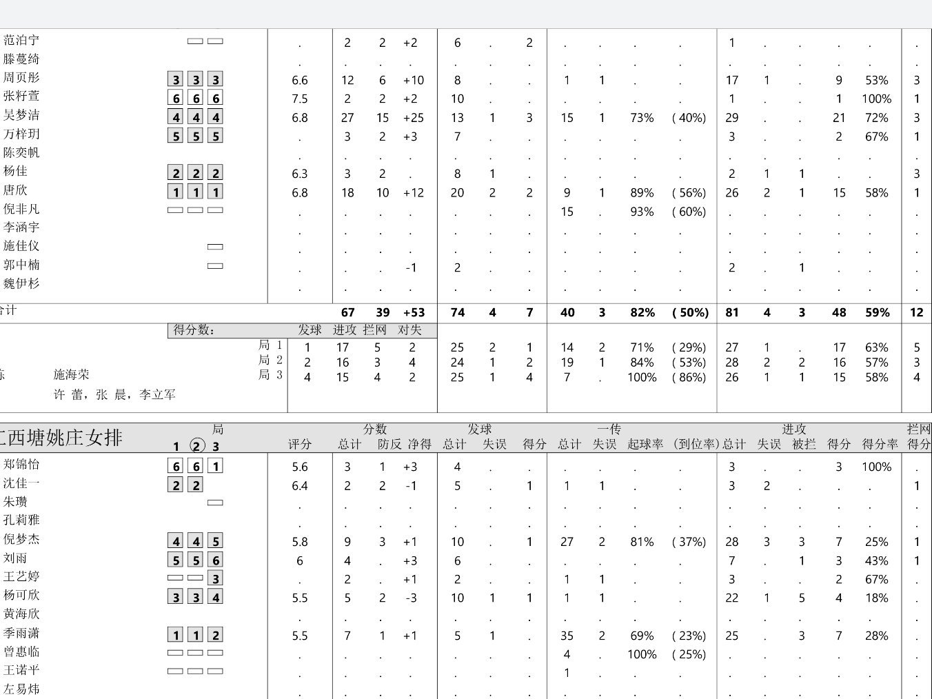 【有差距】浙江女排的A级第1️⃣战|边攻进攻数据一览2025-2026中国女排超级联赛中国女排浙江女排0比3江苏女排(14比25,20比25,7比25)❤️倪梦杰:28扣7中3失误3被拦,25%❤️季雨潇:25扣7中0失误3被拦,28%❤️杨可欣:22扣4中1失误5被拦,18%浙江女排 三叉戟集体哑火,失误被拦都创新高,面对国家队级别的江苏女排,浙女的边攻突破能力还是受到了挑战,而之前引以为傲的发球,本场比赛也只得到3分,分别来自沈佳一、倪梦杰和杨可欣。