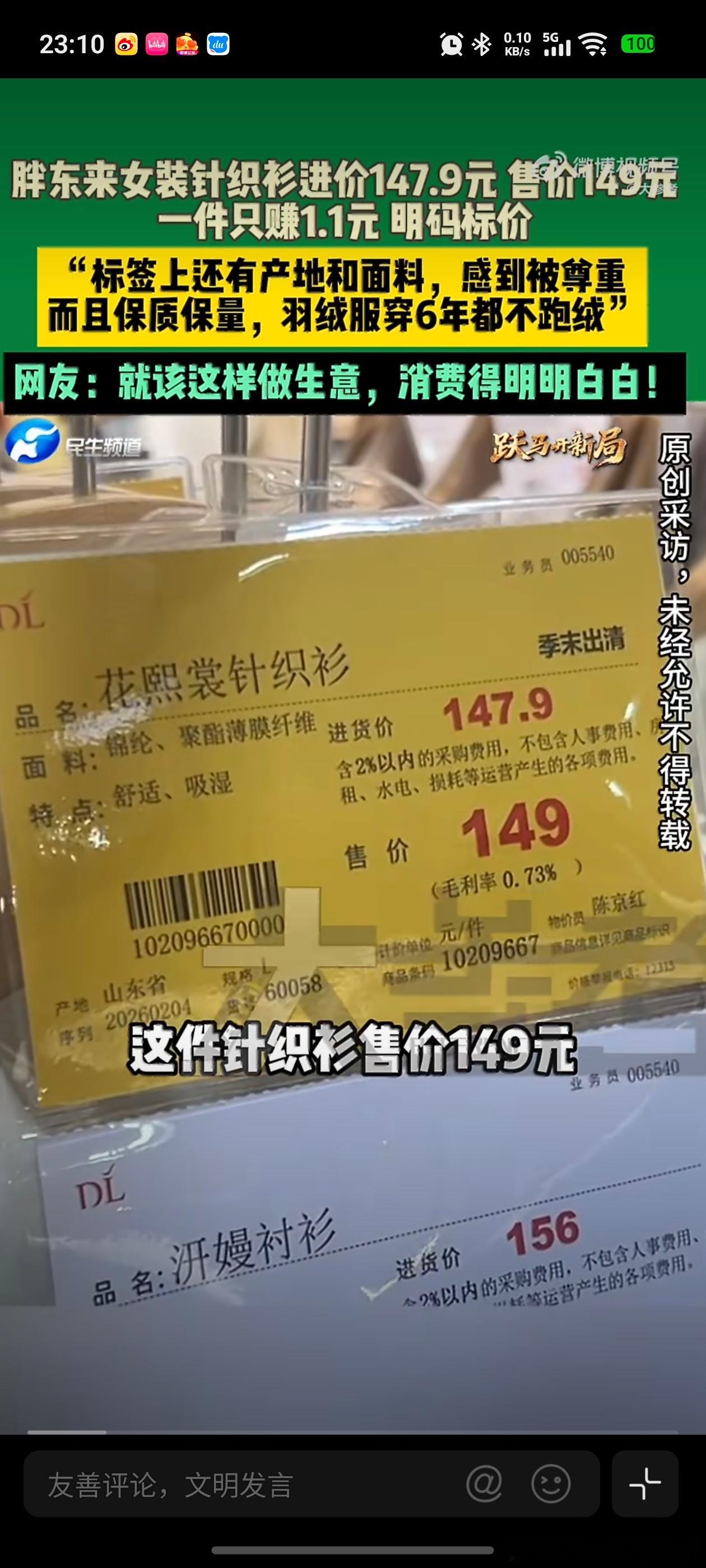 胖东来针织衫只赚1块1胖东来这个直接明码标价,就赚1块1,走的薄利多销的路线,这