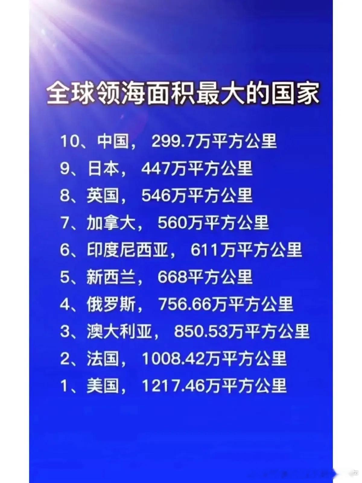 没有想到法国的领海面积这么大!有1008万平方公里。